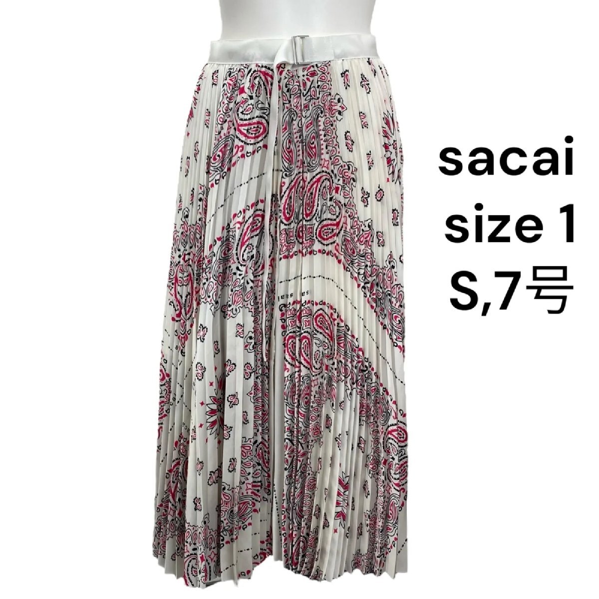 サカイ sacai バンダナプリント マキシ丈 プリーツスカート ホワイト 1、S、7号 レディース S5T283