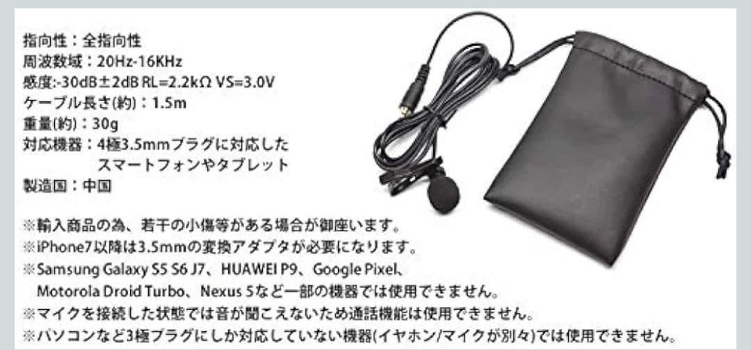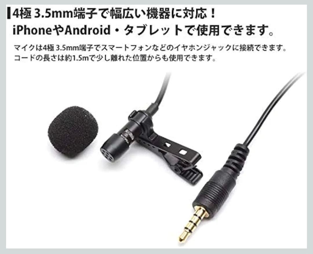 接続技術AUX コネクタタイプ3.5mm端子 特徴クリップ 対応デバイススマートフォン, パソコン スマートフォンやタブレットのイヤホンジャックに差すだけの簡単接続! 動画撮影や会議、説明会、セミナー、インタビューなどをスマホ内臓のマイクより高音質で録音したい場合にオススメです。 全指向性コンデンサーマイクでマイクの向きに関係なく360度から集音できます。 指向性:全指向性 周波数域:20Hz-16KHz 感度:-30dB±2dB RL=2.2kΩ VS=3.0V ケーブル長さ(約):1.5m 重量(約):30g 対応機器:4極3.5mmプラグに対応したスマートフォンやタブレット 実物の写真は8枚目以降になります。説明と異なる場合がありますので、必ず写真をご確認ください。不明点はコメントくださいませ。 訳あり品のため、箱潰れ・ビニール破れ・開封痕・指紋などがある場合がございます。簡易検品のため、使用感や部品不足を見落としている可能性もあります。 完品をお求めの方はご希望に添えない場合がございます。 Amazon参考価格:750円 即日発送(最安発送方法に変更あり) フォロー+購入希望コメントで100円お値引き ご購入前にプロフィールをご確認ください。 管理番号3 |