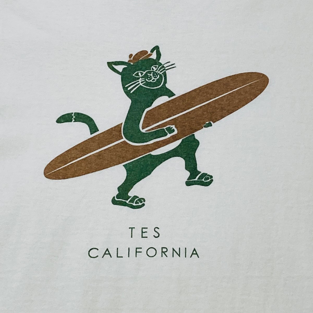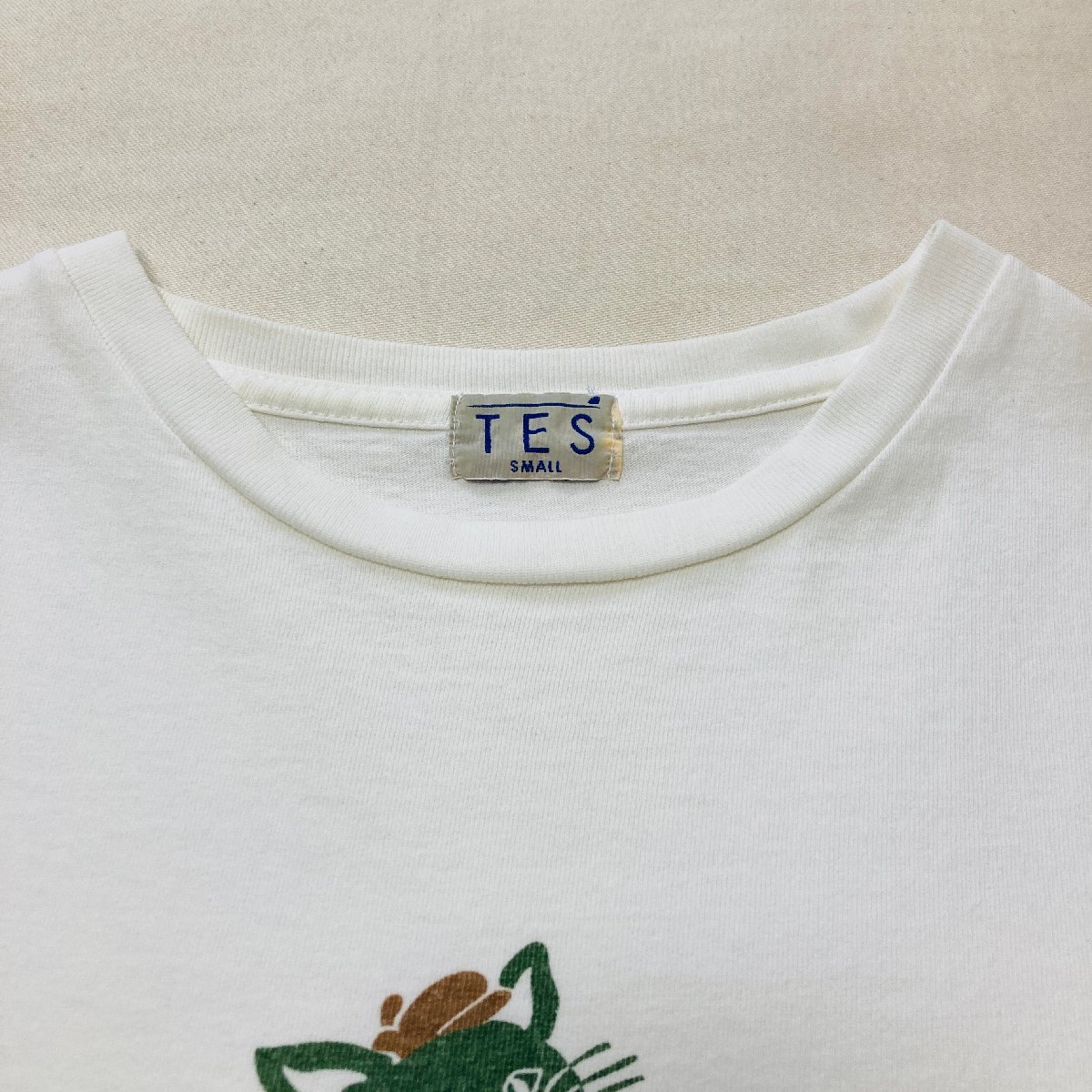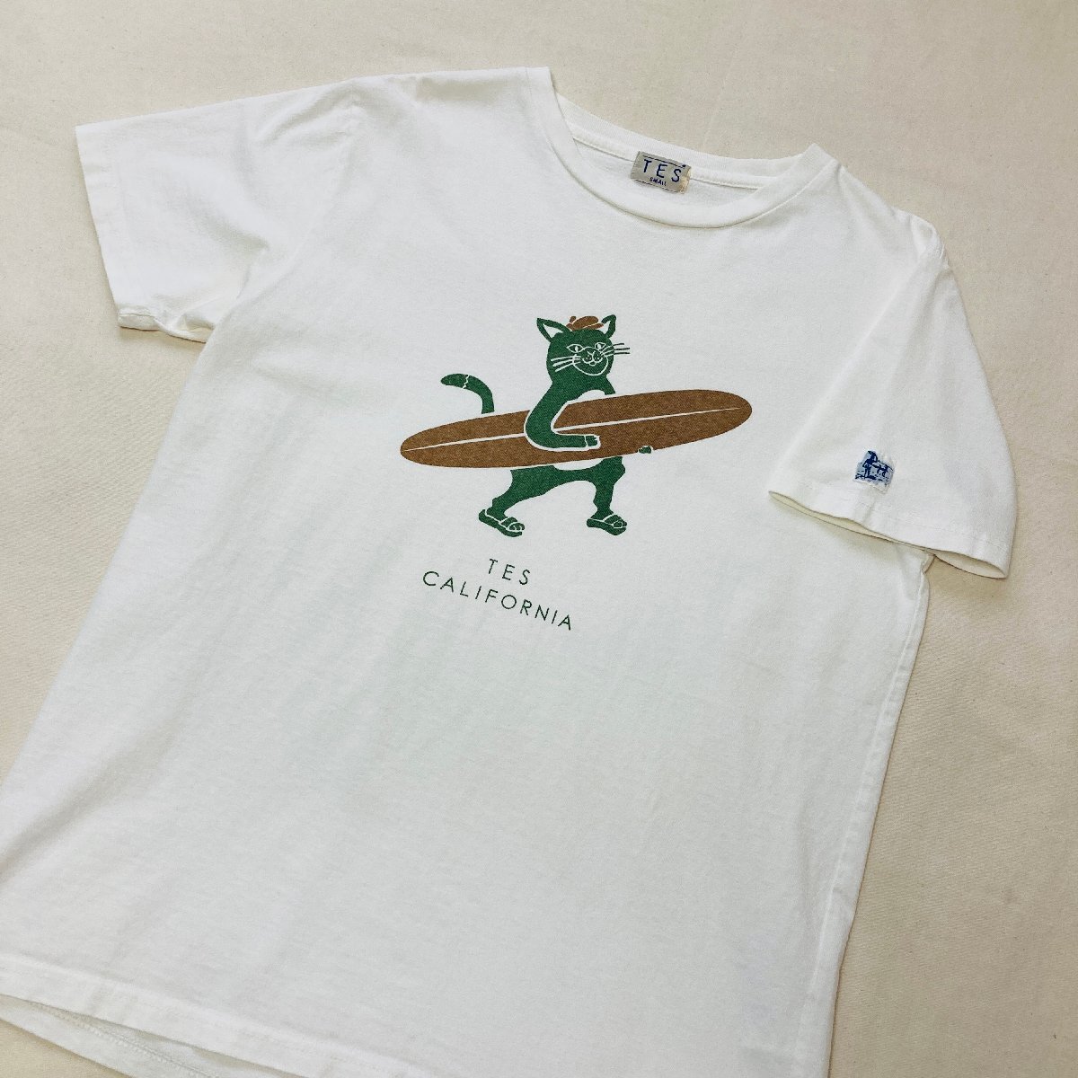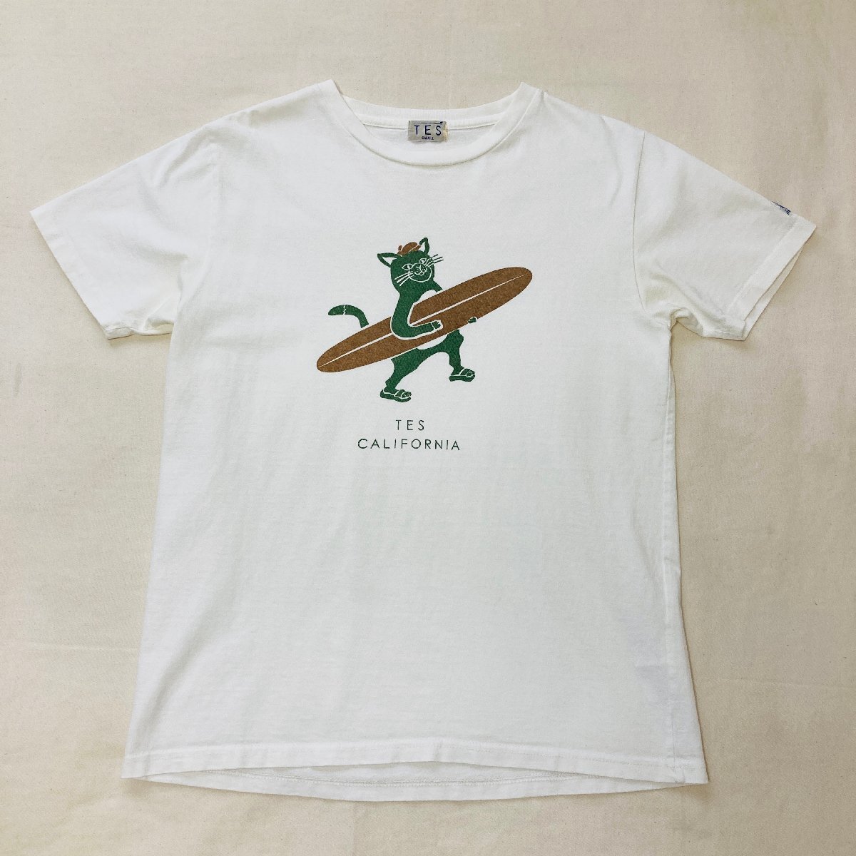 TES CALIFORNIA 日本製 アニマル/ねこ プリント Tシャツ ホワイト/白 SMALL