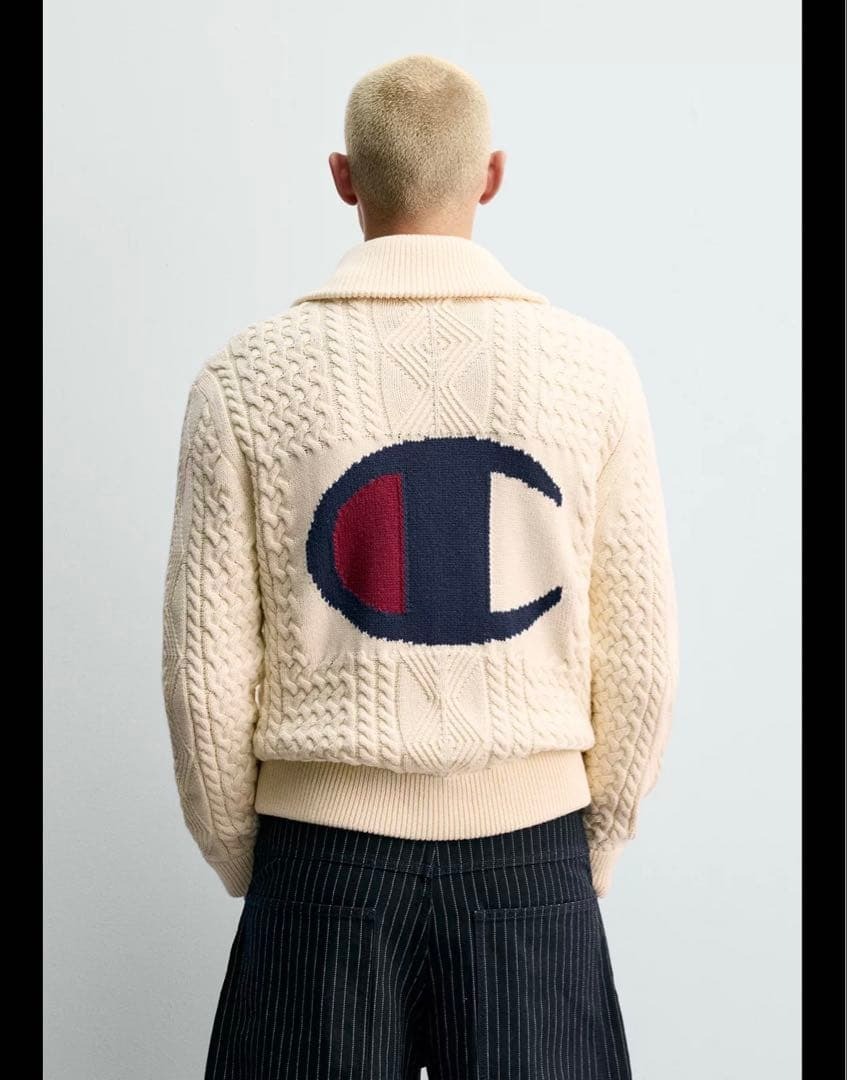 検索用:ケーブル編みジャカードニットジャケット チャンピオン x Zara、ニット、セーター、カーディガン、ロゴドン