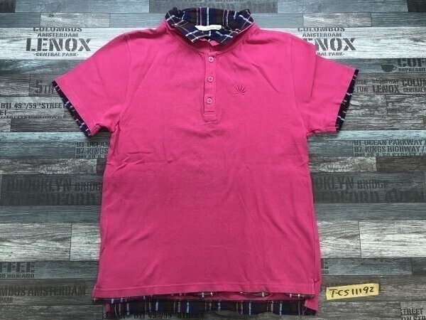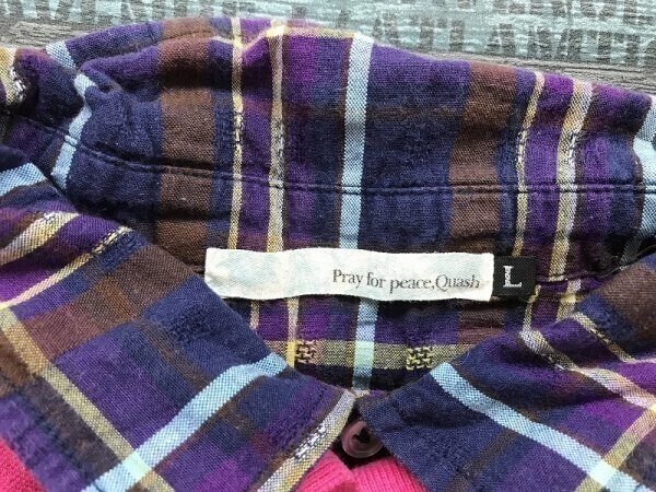 pray for peace,Quash メンズ チェックシャツ重ね着風 ワンポイント刺繍 半袖ポロシャツ L マゼンタ です。
