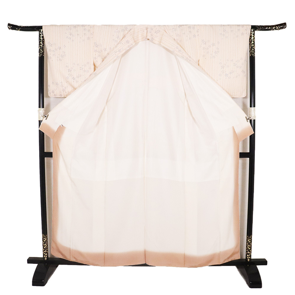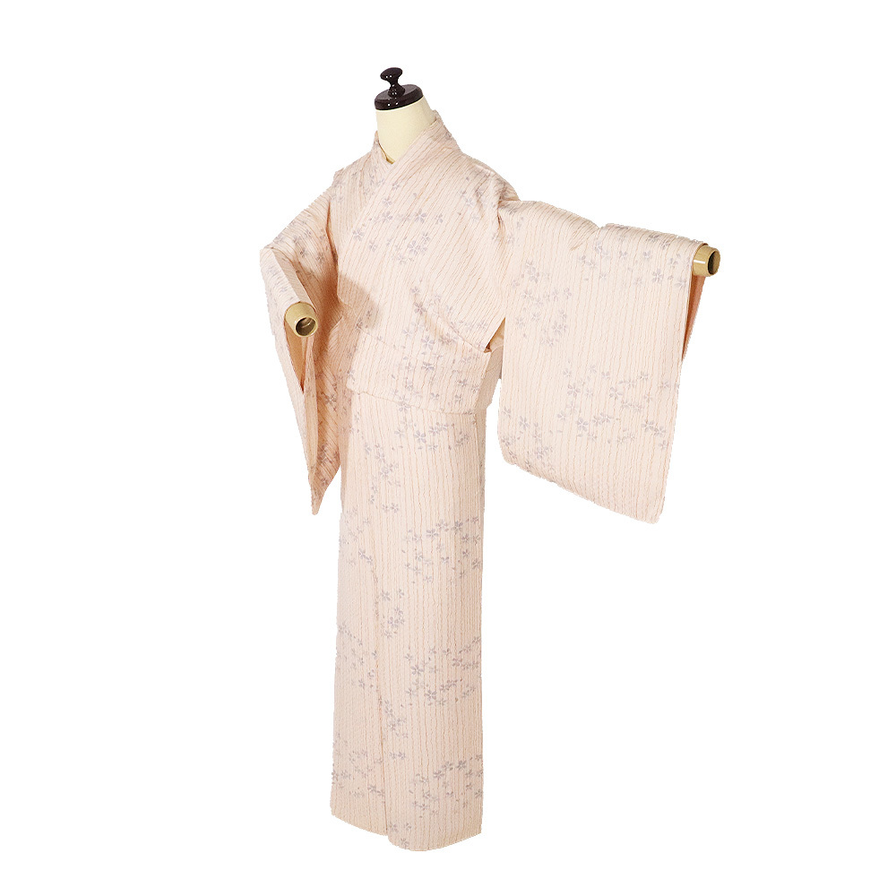 | 商品 | 友禅 小紋 袷 丹後縮緬地 ピンク(肌色)・七宝地模様地 桜・よろけ縞 165 広襟 新品 仕付け付き |