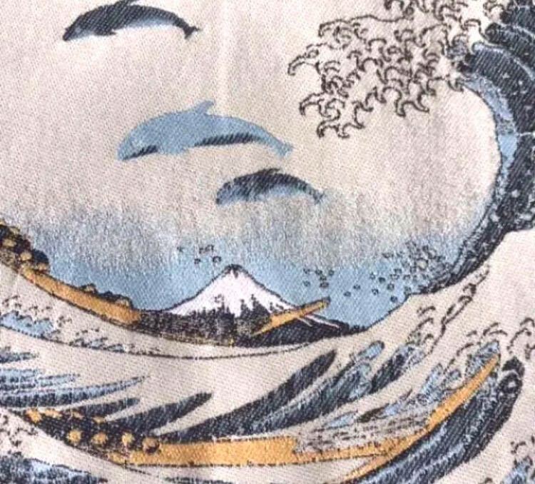 葛飾北斎の名画をモチーフにジャンプするシャチも見える遊び心あるデザインです。