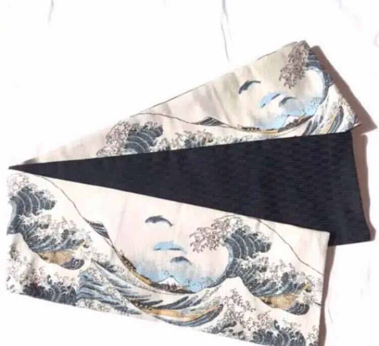 もう一方は黒の矢絣模様でシンプルなデザインなので、折り返して巻いたり、リバーシブルでもご利用頂けます。