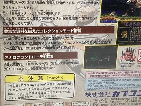 | 商品説明 | プレイステーション用ソフトで、カプコンの名作 魔界村シリーズが3点入ったカプコンジェネレーション2 第2集 魔界と騎士 です。 写真にて状態をよくご確認いただき、現状品渡しにご理解の上入札をお願いいたします。 ■ 注意事項 落札前に必ずこちらをご確認ください。 当店の商品を落札された場合、こちらの「注意事項」に同意いただいた事とさせていただきます。 オークション終了後の返信は原則3日以内、入金は5日以内にお願い致します。もし全くご連絡がなく、この期間を守っていただけない場合は、「落札者様都合で削除」とさせていただきますのでご注意ください。 ■お客様都合による、商品の返品および交換は承っておりません。 ■中古商品は一点ものです。交換・サイズ変更などはできません。 ■開封済みのものは、汚れやシミがあるモノがございます。写真をご覧の上、ご判断下さい。 ■お客様のお使いになられているモニターや端末等によって、色が異なって表示される場合がございます。 ■素人による検品となり、細かい点での見落とし、製品について勘違いなどがある場合がございます。基本的に写真の状態での現状品でのお渡しになりますので気になる点がある方は、必ずご質問下さい。 付属品の状態、写真に写っていない部分や・説明文に記載されていない付属品や傷・汚れ等の有無につきましては、免責事項とさせていただきますので、ご了承ください。 ■掲載写真や説明と、説明欄の写真や説明が違う場合があります。こちらが記載ミスをしてしまう可能性もありますので、タイトルと写真・説明におかしい点があれば質問などで確認をいただけると助かります。 ■状態を極度に気になさる方、神経質な方はご入札をお控え下さい。 ■ご質問などございましたら、答えられる範囲内でお答えいたしますが、専門的で分からない質問にはお答え出来かねる場合がございます。 ■当商品は買取による中古品となります。 ■ブランド品の真贋に関しては、お客様の判断による返品は、お受け致しかねます。正規店にてご確認いただき、取り扱い不可の際は全額返金致しますので、確認をいただいた店舗名など詳細をお知らせください。 ■商品タイトル・説明欄に『ジャンク/現状品』記載のある商品は基本的に動作の確認をしておらず、故障や不備等によるご返品をお受け出来ません。 動作の確認をしているものも、数秒~1分程度の確認となりますので、長時間の使用による不備等がある可能性があります。現状品と記載がある商品は動作の確認事項も再現性がない可能性があることをご理解の程よろしくお願いいたします。 ■ご返金は、商品をご返送いただいた後、状況の確認等が終わり次第、ご指定の銀行口座へのお振込となります。※不備の確認が出来ない場合は、送料お客様ご負担にて再度発送致します。 ■発送に関して、基本的に入金後1~2日程度で発送予定ですが、お休みをいただく場合があります。お急ぎの方は出品リストページの上部にある自己紹介に休みの期間を記載していますので、念のためそちらをご確認ください。 ■誠に残念ではありますが、新規および評価の悪い方の入札はトラブルが多いため、当方の判断にて削除させて頂く場合がございます。但し、これらの方の中で、購入の意思が強い方は、その理由とともに質問欄よりお伝えくだされば、入札をお受けする場合もあります。 トラブル回避の方策故、以上ご理解ください。 |