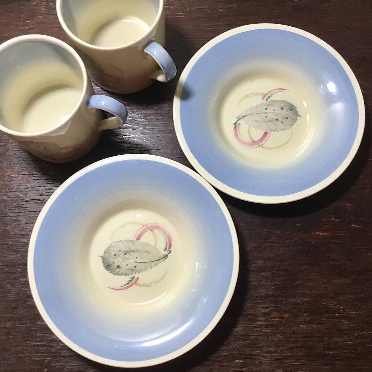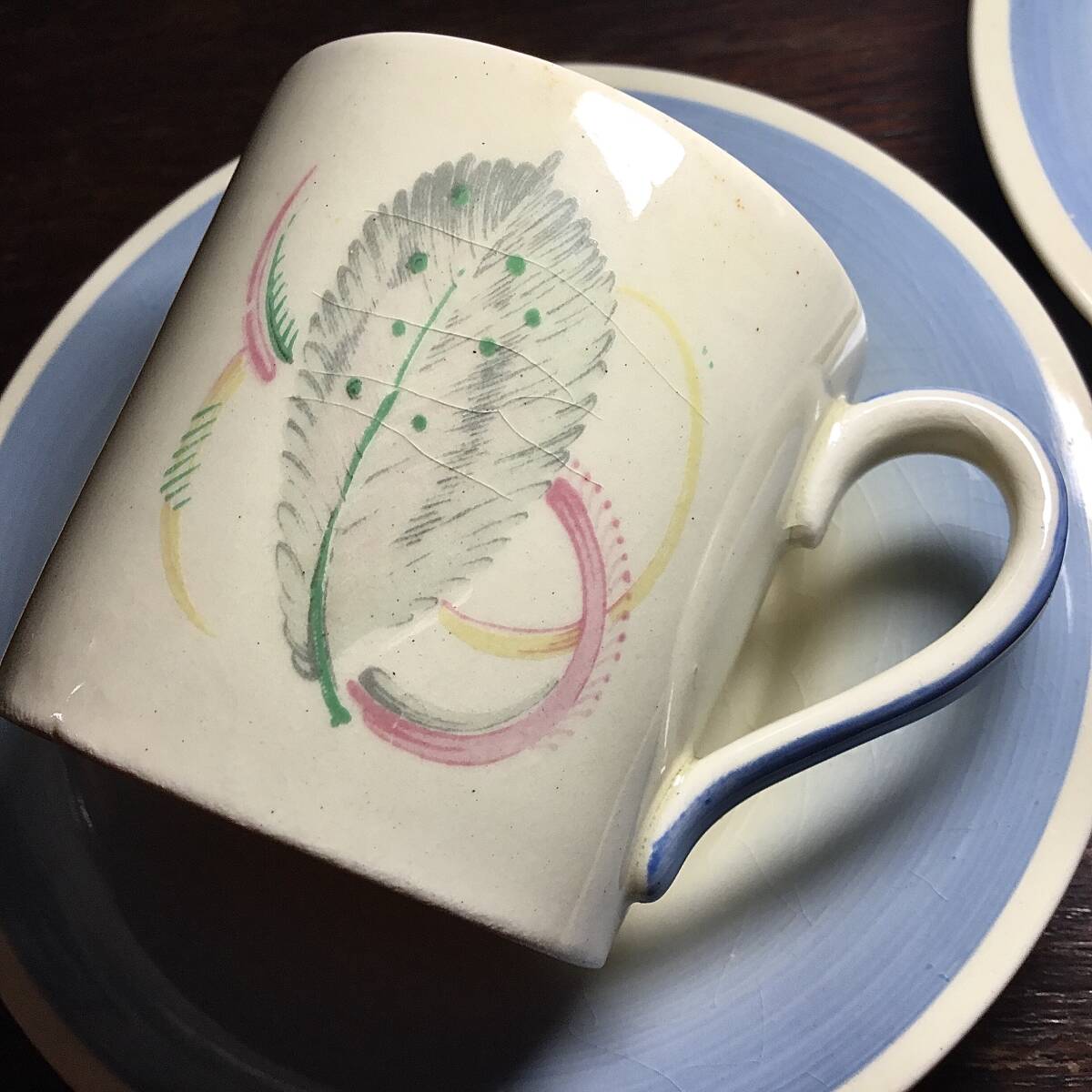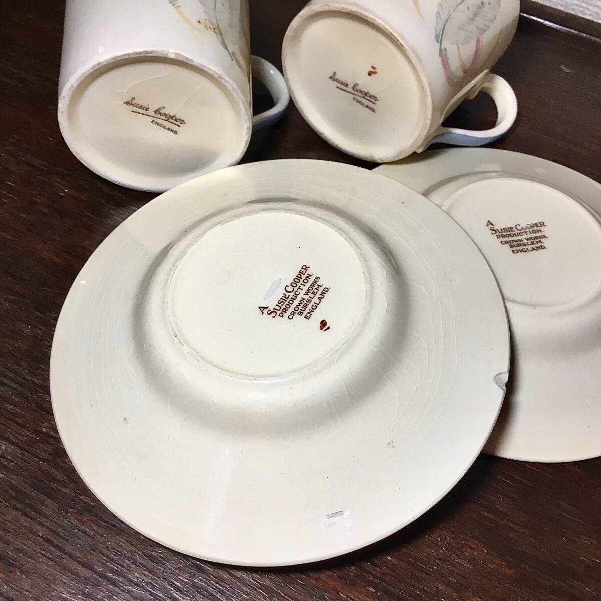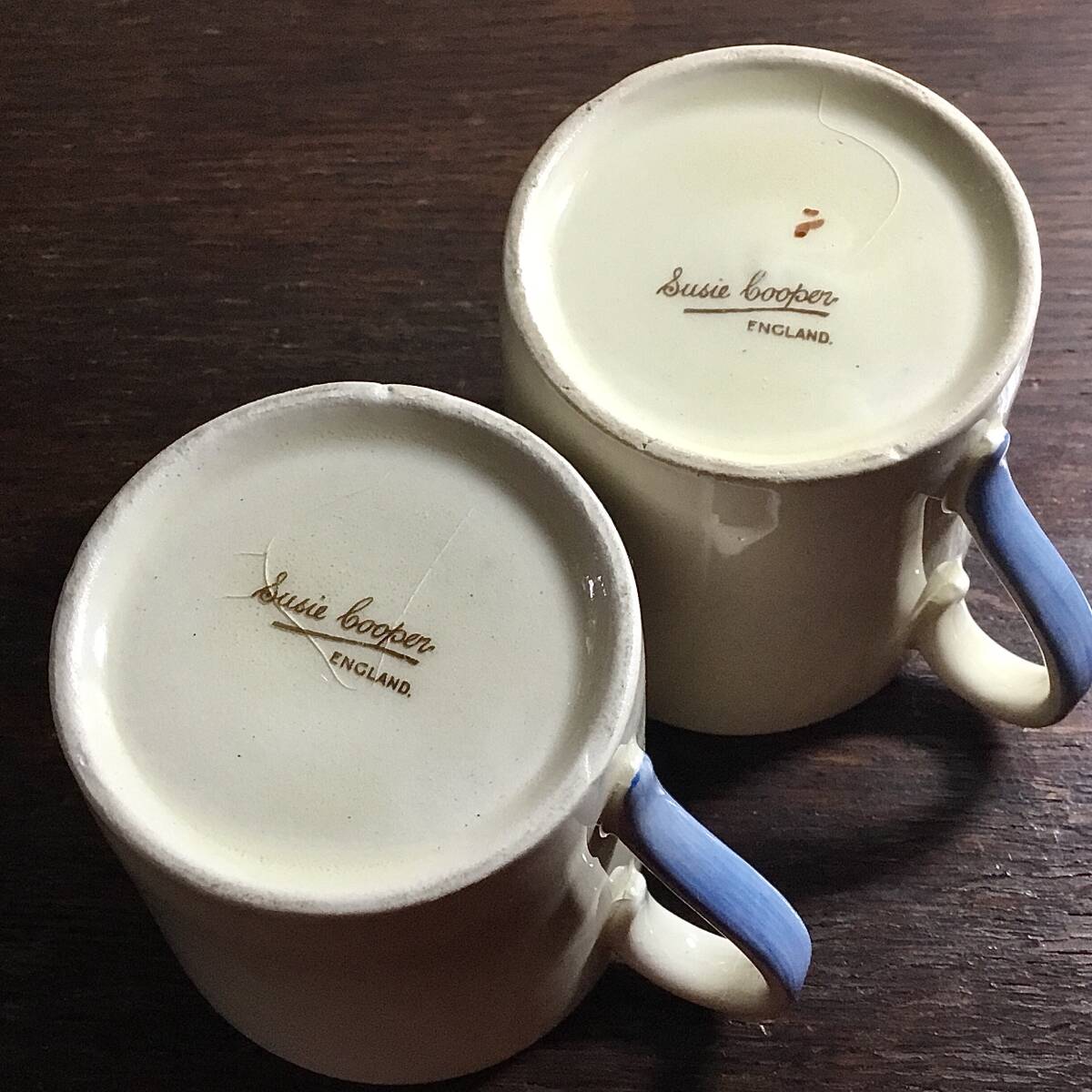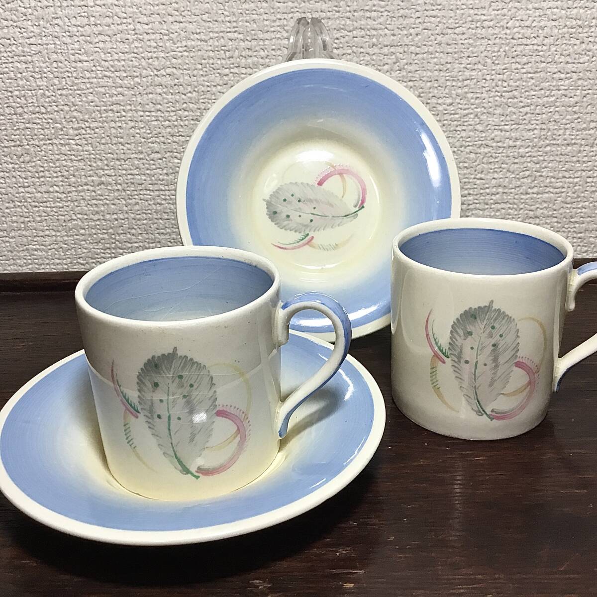 スージークーパー◆デミタスカップ 2客◆グレイリーフ ブルー 洋食器 イギリス SUSIE COOPER C&S カップ&ソーサー アンティーク
