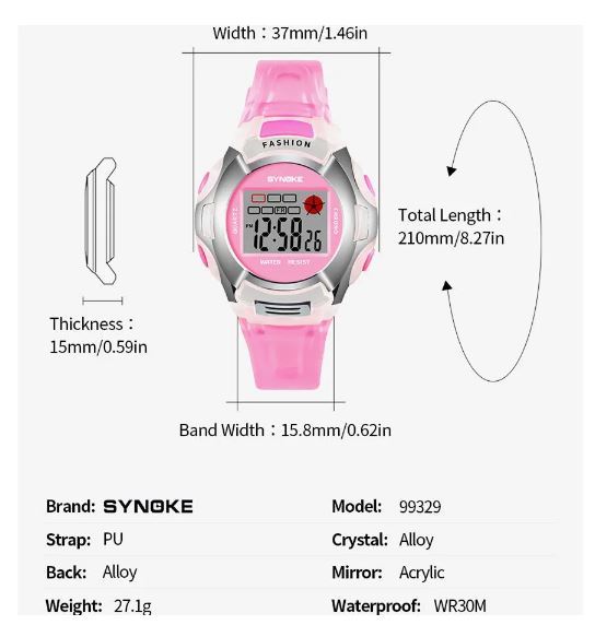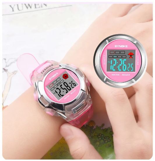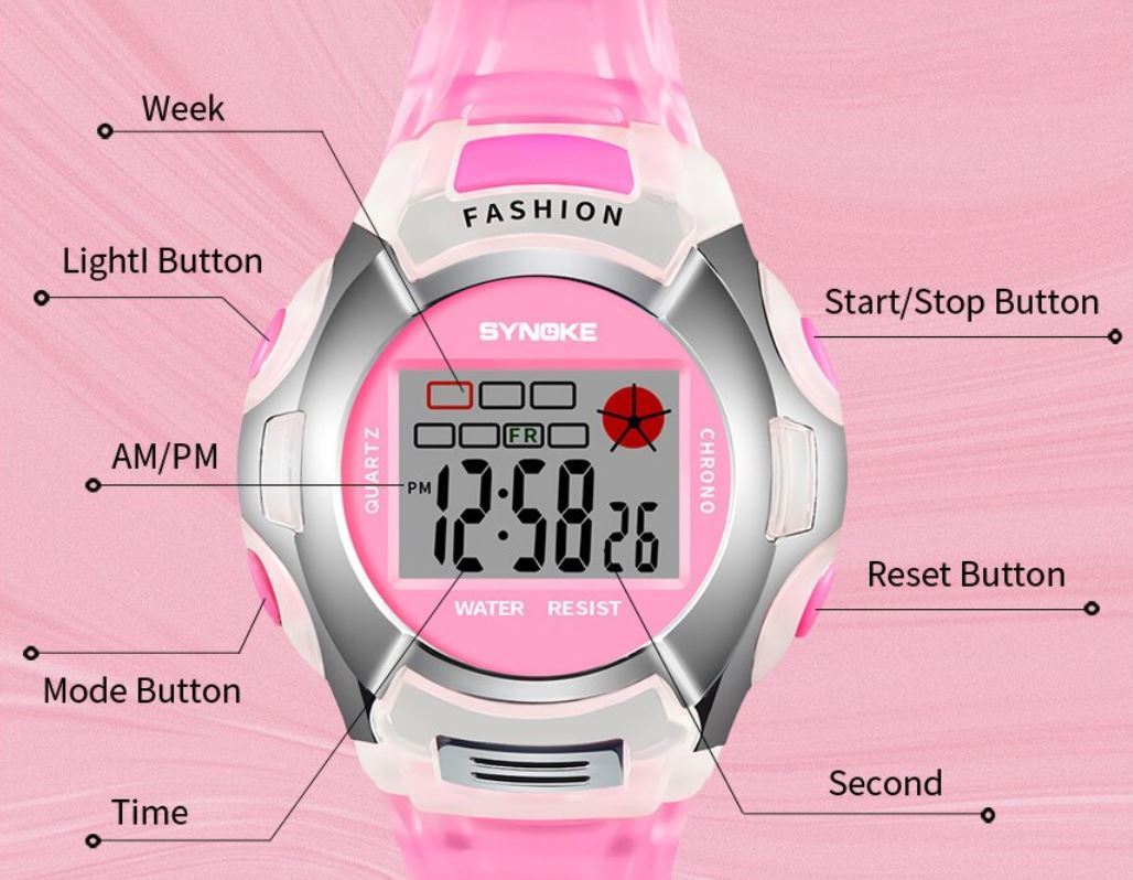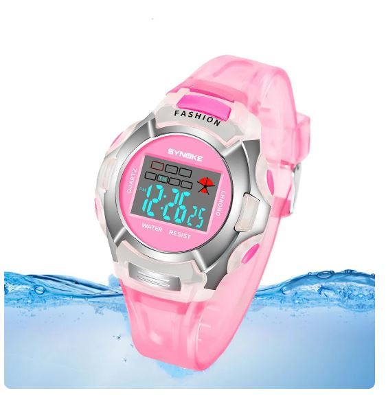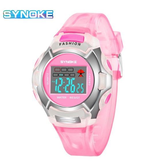 送料無料 未使用品 Synoke 子供 キッズ 腕時計 デジタル ウォッチ ピンク シルバー レディース 女性 女子 多機能 電子時計 スポーツ 防水 軽量 ファッショナブル