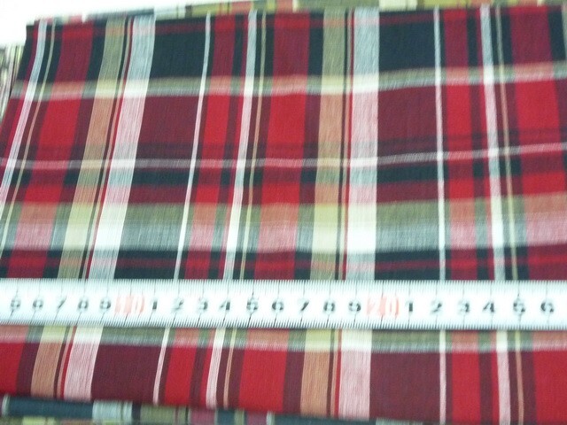 ・ブロード位の先染めのような生地です。イベントの見本生地のため一部にシールの粘着後が有る事があります。