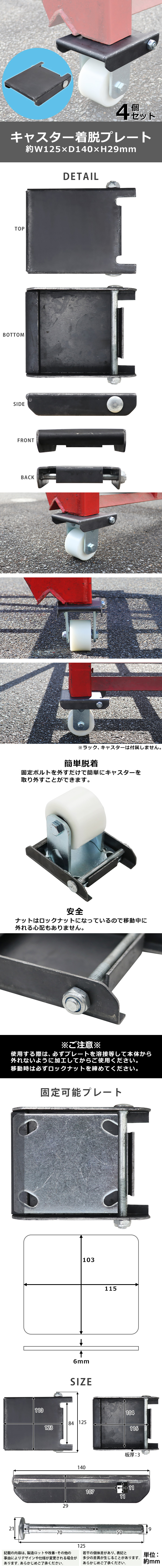 | 商品名 | 送料無料 キャスター着脱プレート W125×D140×H29mm 4個セット ラック 移動 工場 倉庫 作業 運搬 cstrplatesmp4p |