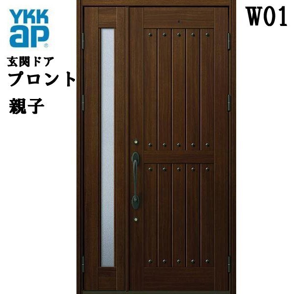 | 商品紹介 | ○ YKKAPのアルミサッシ 玄関ドア プロント W01 親子 【仕様】 * 断熱D4仕様 * ドアクローザーを標準装備 * ピッキングに強いディンプルキー5本入り、工事用キー3本入りの仕様です ------------------------------------ 【玄関ドア プロント 親子 選択項目】 ・玄関色 ・吊元 ・ハンドル種類(手動錠) ロートアイアン調ハンドルは+3.000円) ・アングルの有無 (※有りの場合は、+4.000円) 【オプション】 ・オプション スマートコントロールキー 電気錠又は電池錠 *ピタットキー (+42.000円) *ポケットキー (+66.000円) ・スマートコントロールキー専用ハンドル (洋風カーブハンドルは、+5.000円) ------------------------------------
