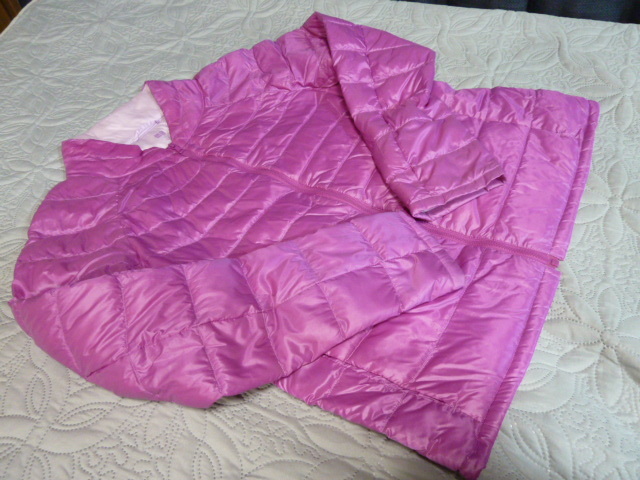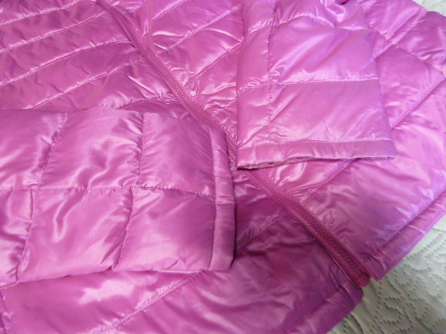自己紹介を読んで下さいね。ユニクロ UNIQLO ウルトラライト ダウンの ピンク フルジップ ダウン ジャケットす。目立つシミや色あせやキズ等は無いと思います。サイズはL記載で、実寸、そで脇下47cm、身幅54cm、着丈61cm、裾幅52cmくらいです。素材は、表裏、ナイロン100、中綿、ダウン90、フェザー10です。お手持ちのお洋服と合わせて下さいね。定形外450円発送がお安いです。ノークレームノーリターンでお願い致します。
