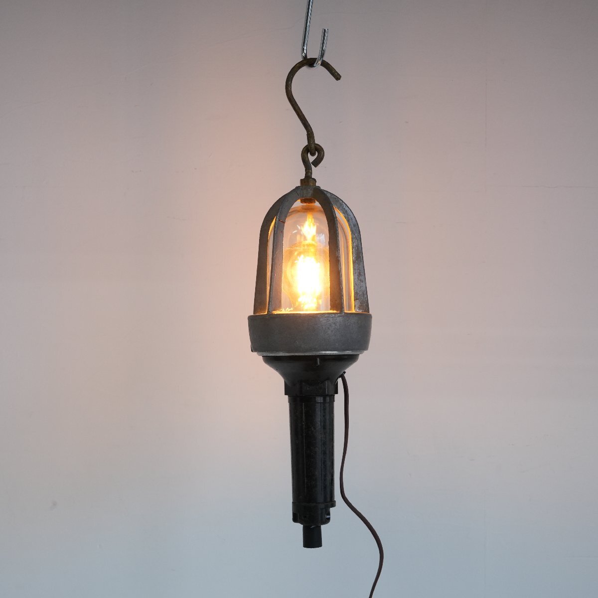 | 商品説明 explanation | 1940年代頃の工場などで使われていたハンドランプです。 把手がプラスチックのようなで、ガードはアルミ製、シェードはガラスです。 経年による風合いがヴィンテージらしい雰囲気です。 インダストリアルな空間の演出にいかがでしょうか。 |