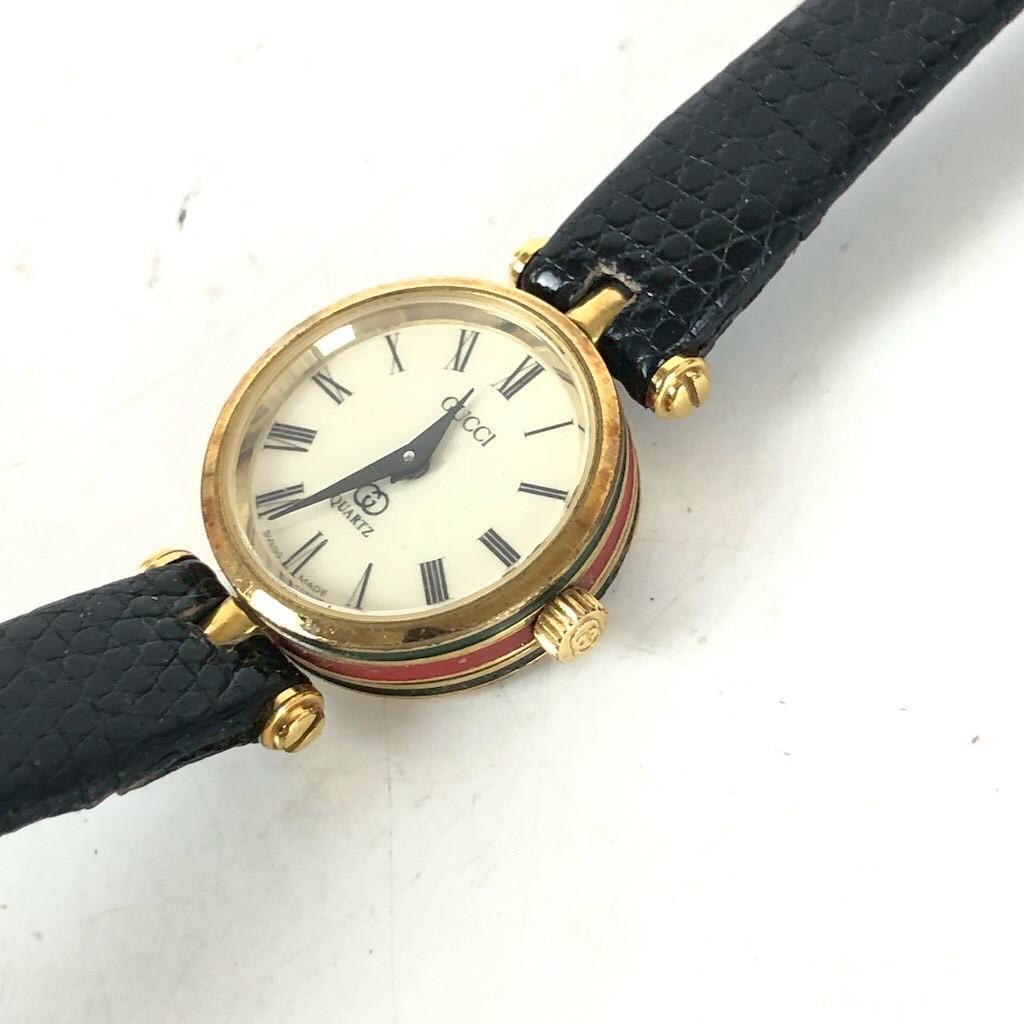 こちらは GUCCI グッチ ヴィンテージ腕時計 ローマ数字 クォーツ ゴールド×レザー ダブルGロゴ になります。