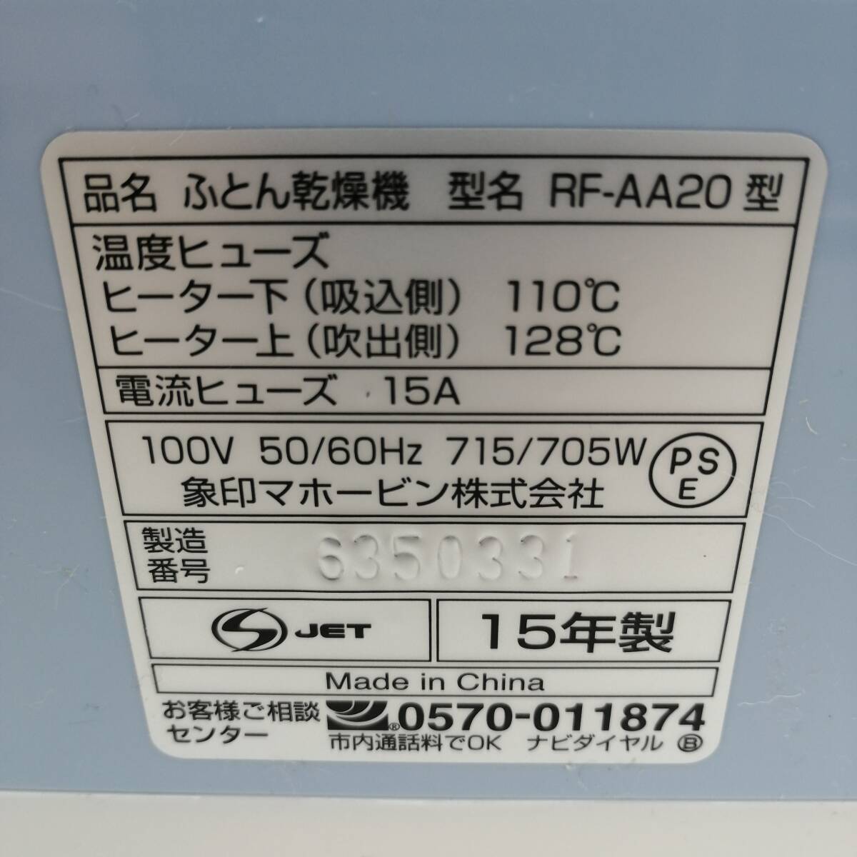 y3753 美品 ZOJIRUSHI 象印 ふとん乾燥機 スマートドライ RF-AA20 ブルー 15年製 家電 電化製品 乾燥機 | |||