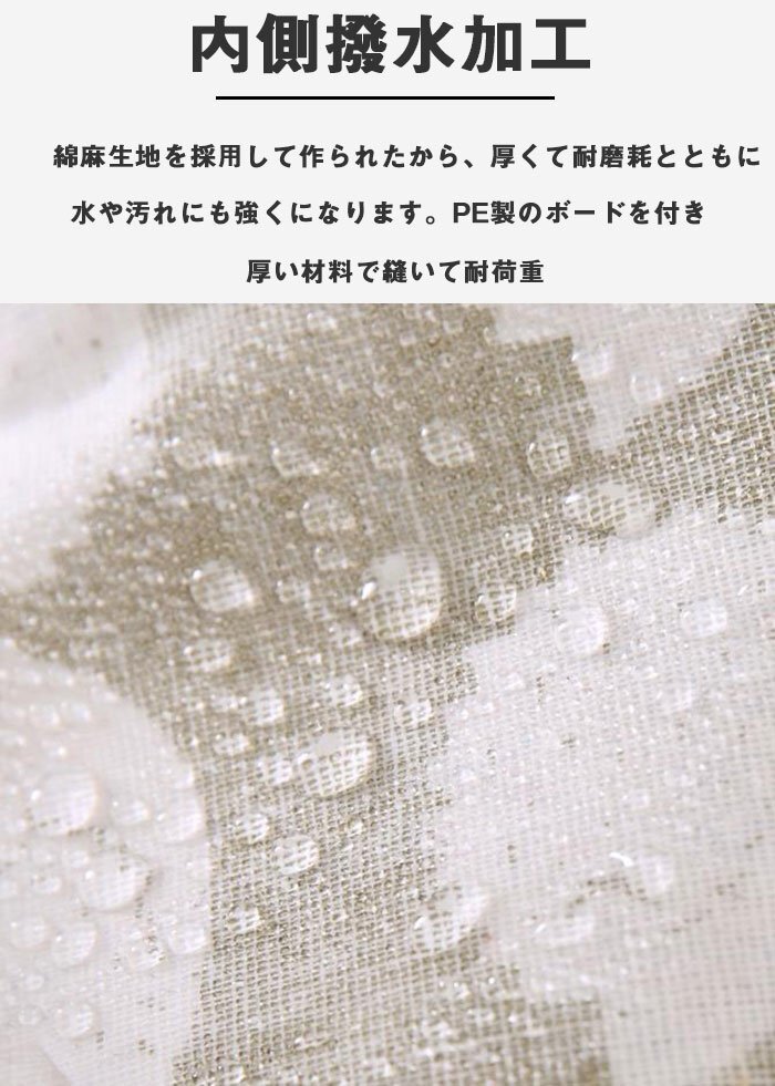 軽量で耐久性のある収納バスケット、バスケットの上部枠にはワイヤーが入っているので少量の時でも型崩れしにくいです。水や汚れが染み込まないよう内側に撥水加工が施されております。もし汚れが付着した場合でも、拭くだけでお手入れも簡単。洗濯かごの端には取っ手が2つあり、簡単に持ち上げて移動できます。洗濯カゴは折りたたみ式で、使わない時はたたんで、空いているスペースに保管でき、コンパクトで省スペースです。