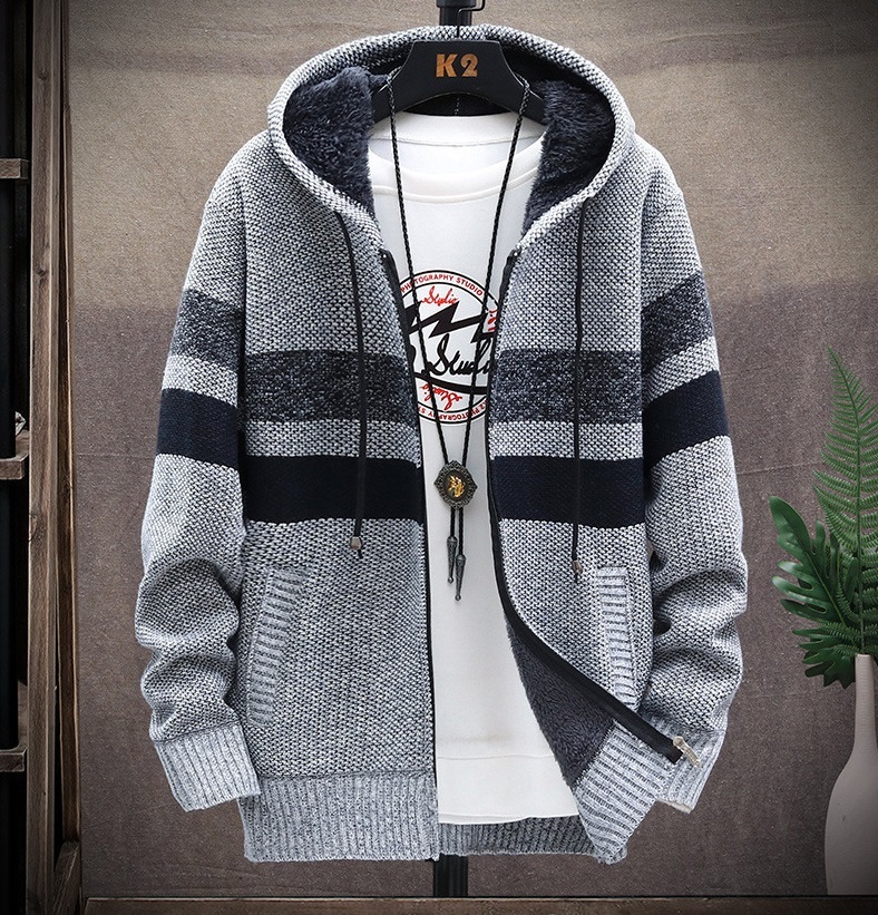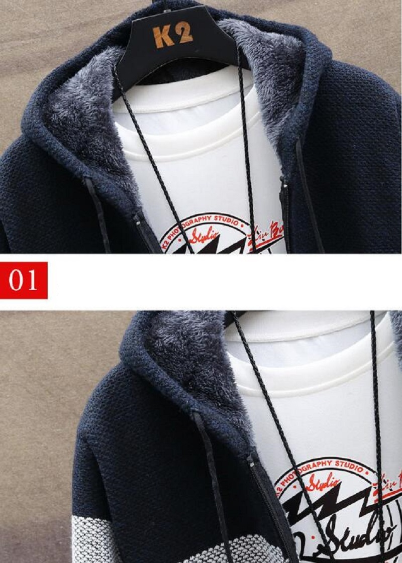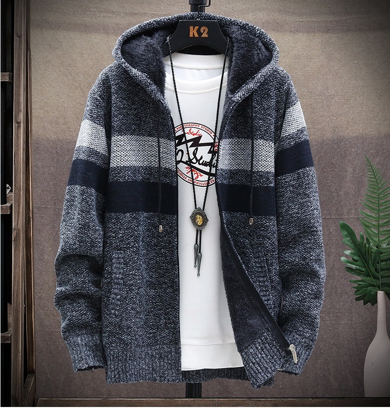 同梱1万円送料無料メンズ ニットカーディガン フード付き 厚手 スウェットパーカー ニットセーター 長袖 紳士 防寒 秋冬 ブラック 3XL