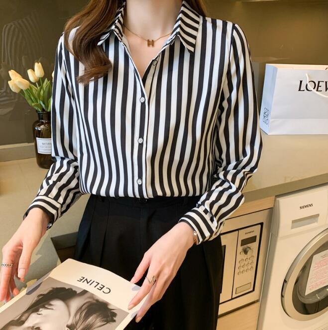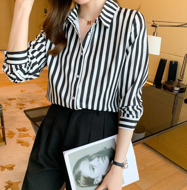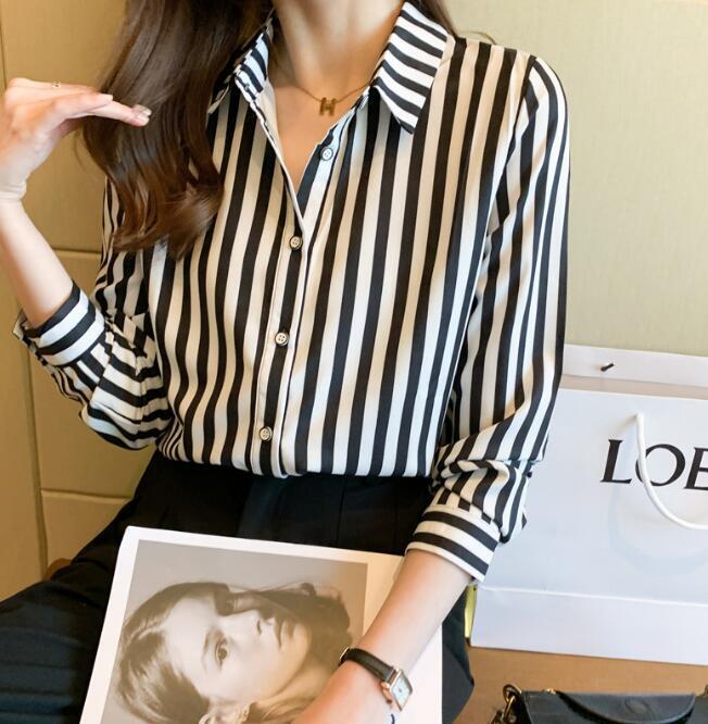 新入荷春 ブラウス レディース 長袖ブラウス ボーダー柄 オフィスブラウス 大人 通勤OL ゆったりシャツ シフォントップス