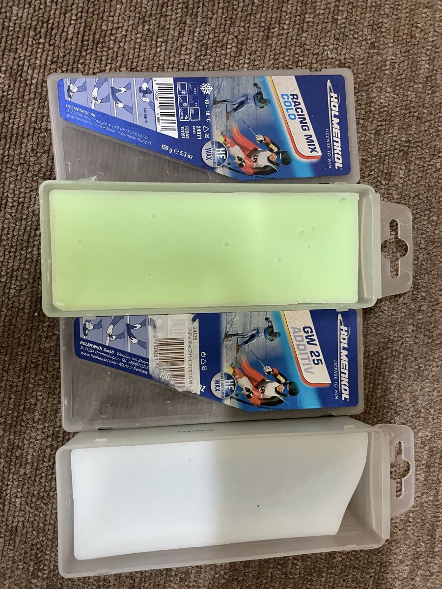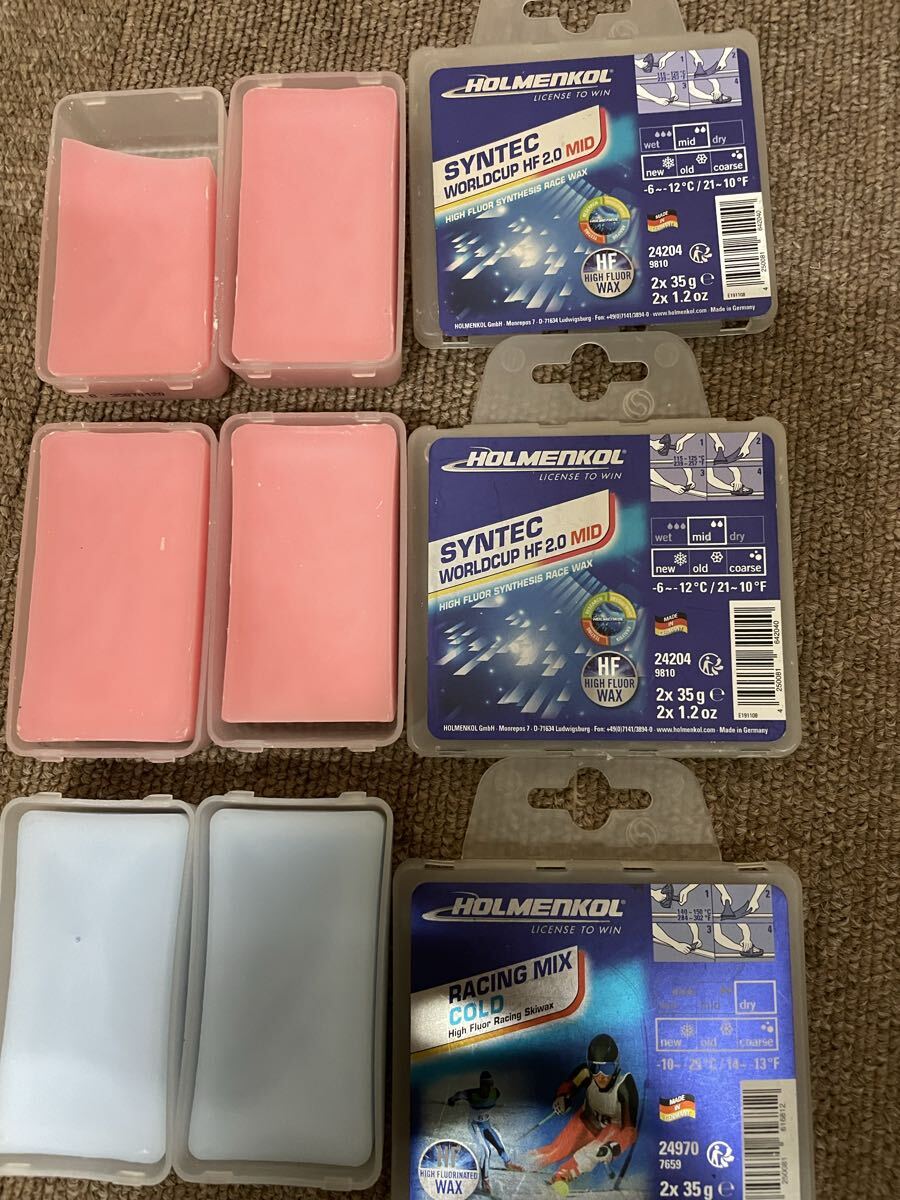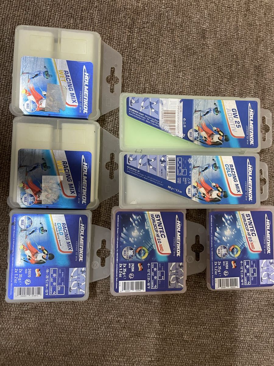 HOLMENKOL ホルメンコール ワックス HFセットです。バラ売りはできかねます。このセットでほとんどの雪質に対応できます。画像5枚目のRACING MIX WETは未開封新品です。ノークレームノーリターンでお願いいたします。