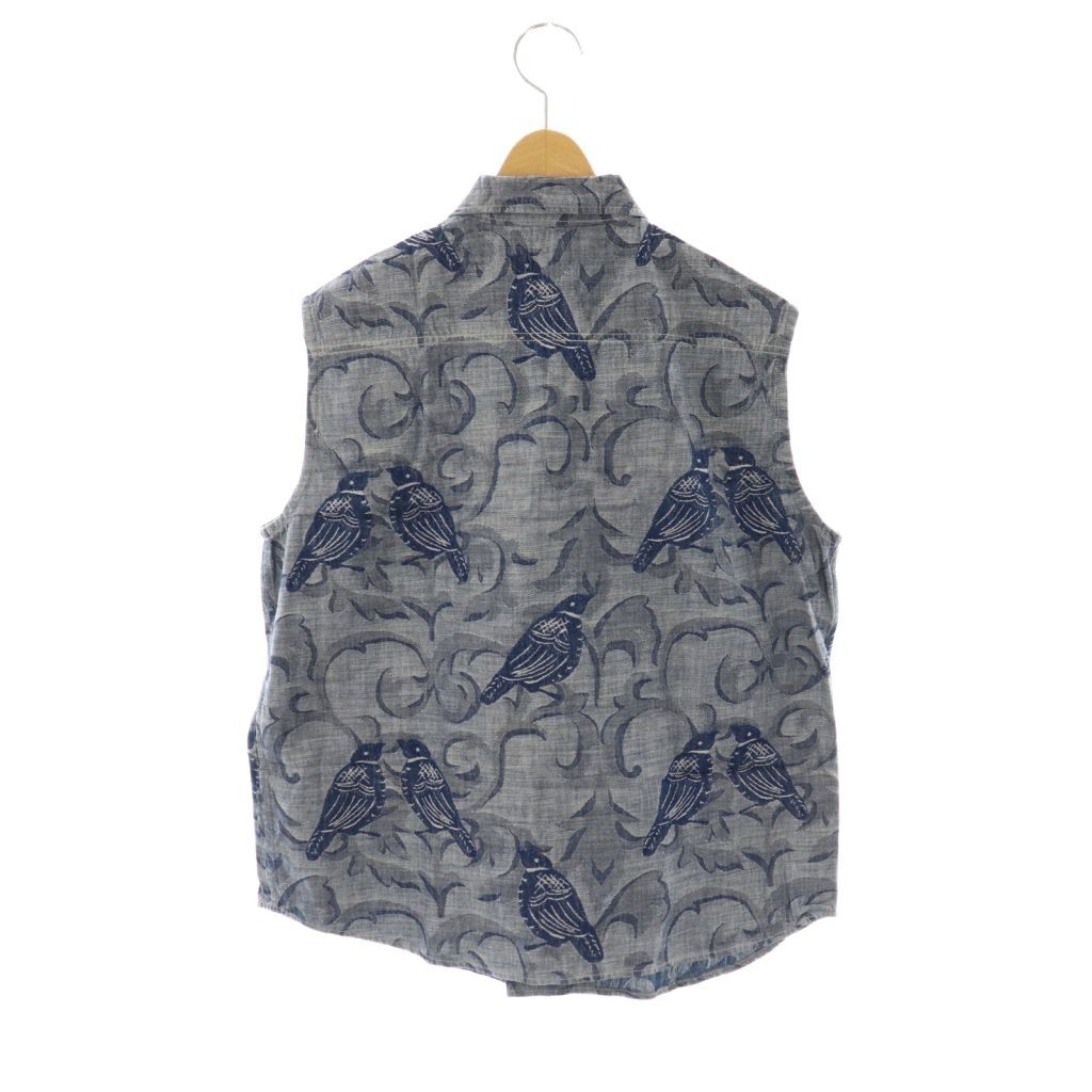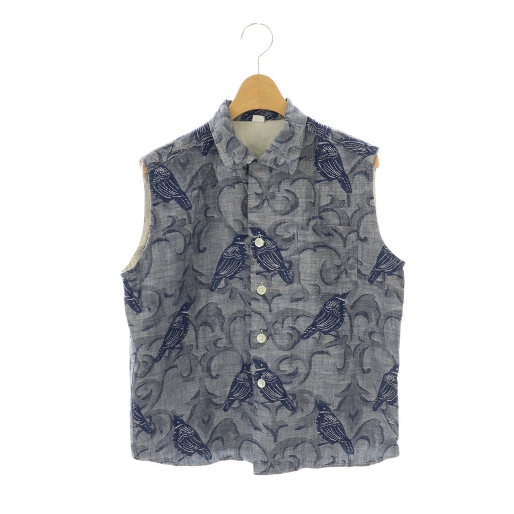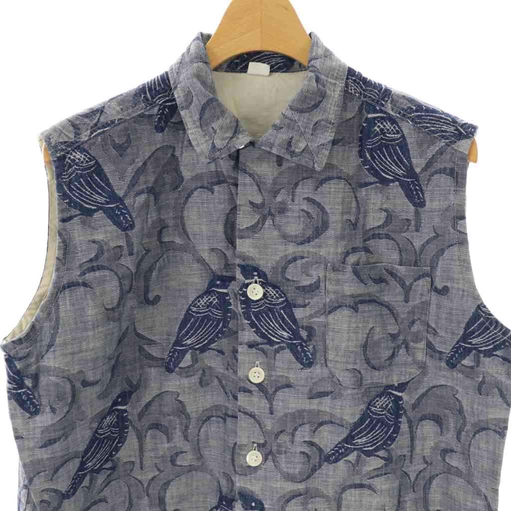 フォーティーファイブアールピーエム 45R 45rpm ジャガード織鳥柄のノースリーブ シャツ スタンドカラー 3 紺 ネイビー