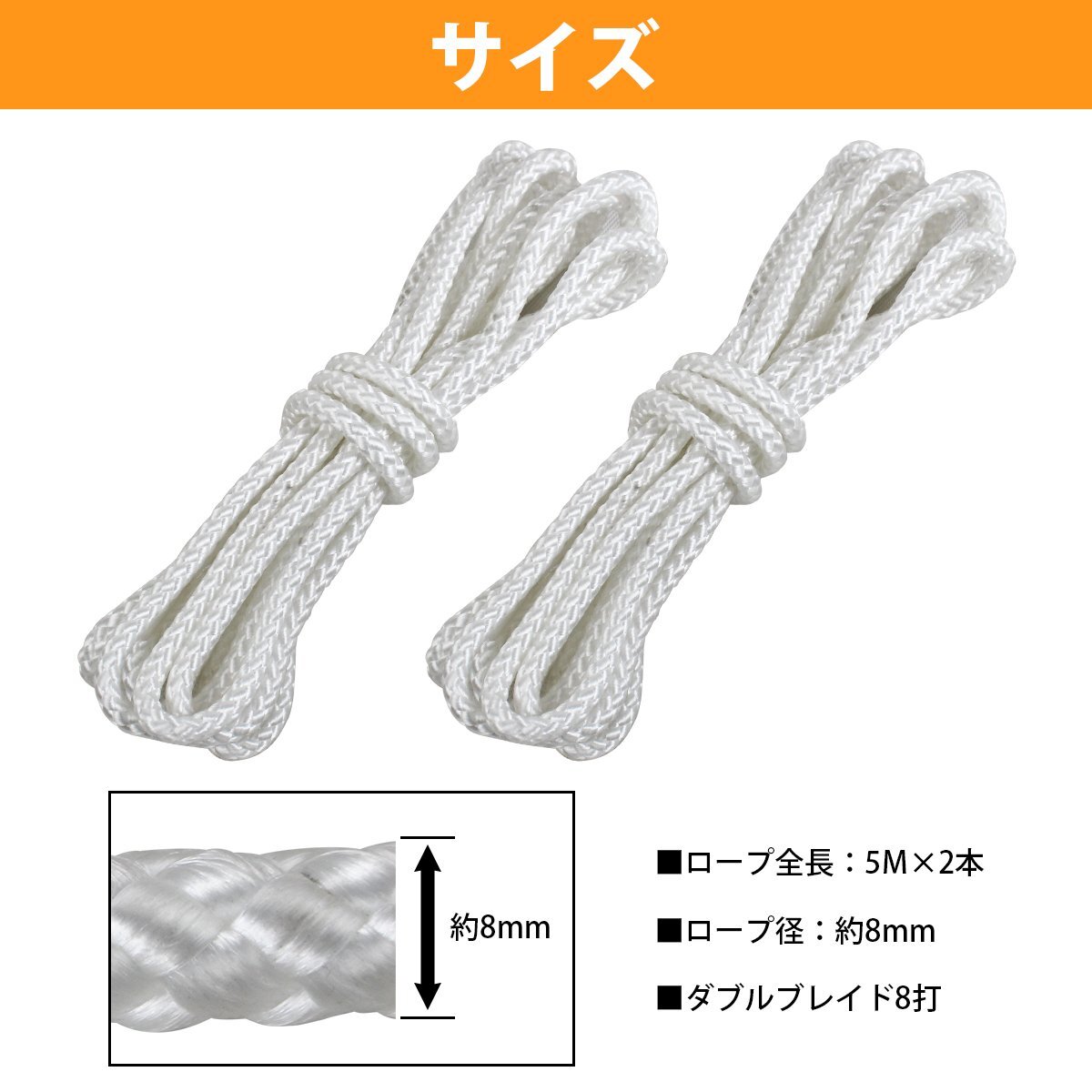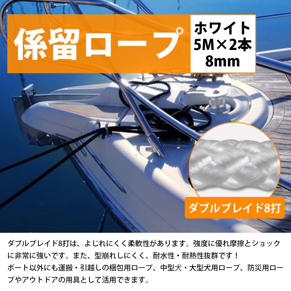 【送料無料】8打 8mm 5m 2本セット 計10m 係留ロープ フェンダーロープ ダブルブレイド 白/ホワイト マリン ロープ 船 係船 8ミリ