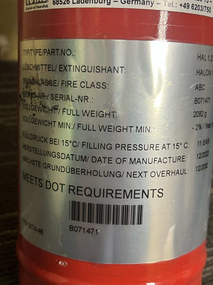 ◎国内では発売されてないドイツ製の軍用機コクピットに搭載される消火器です。
