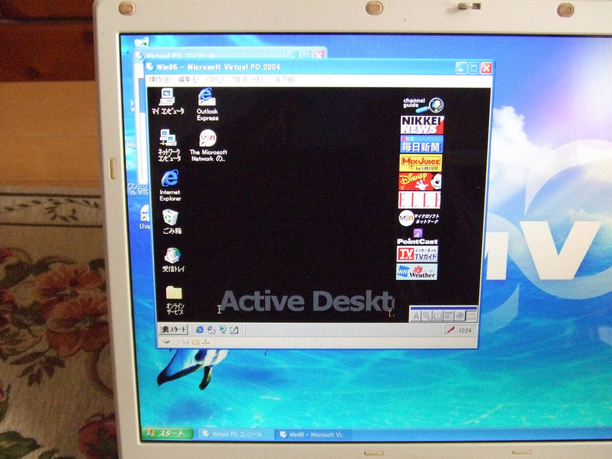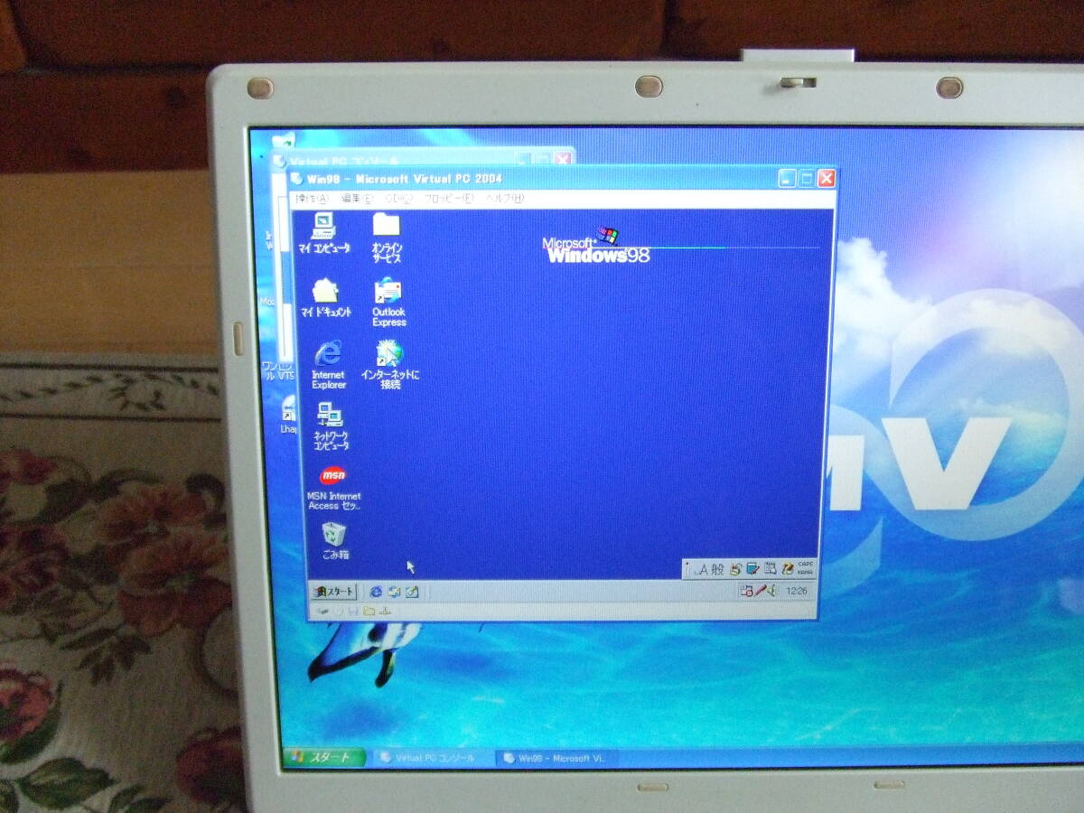 Windows XP をインストールし、そこにVirtual PC 2004をインストールし、 Windows 95Windows 98をインストールしています。