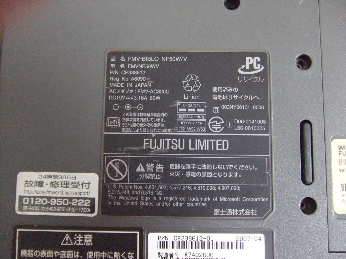 製品名:FMV-BIBLO NF NF50W/V FMVNF50WV