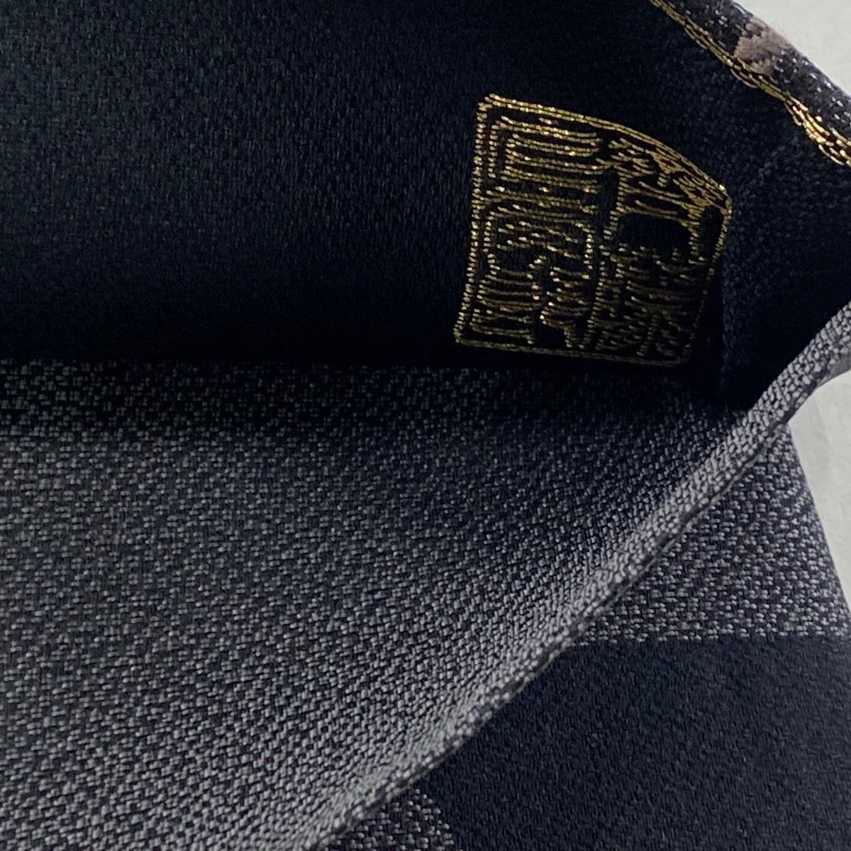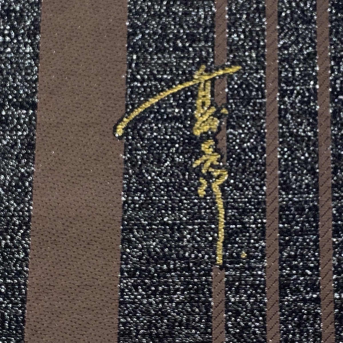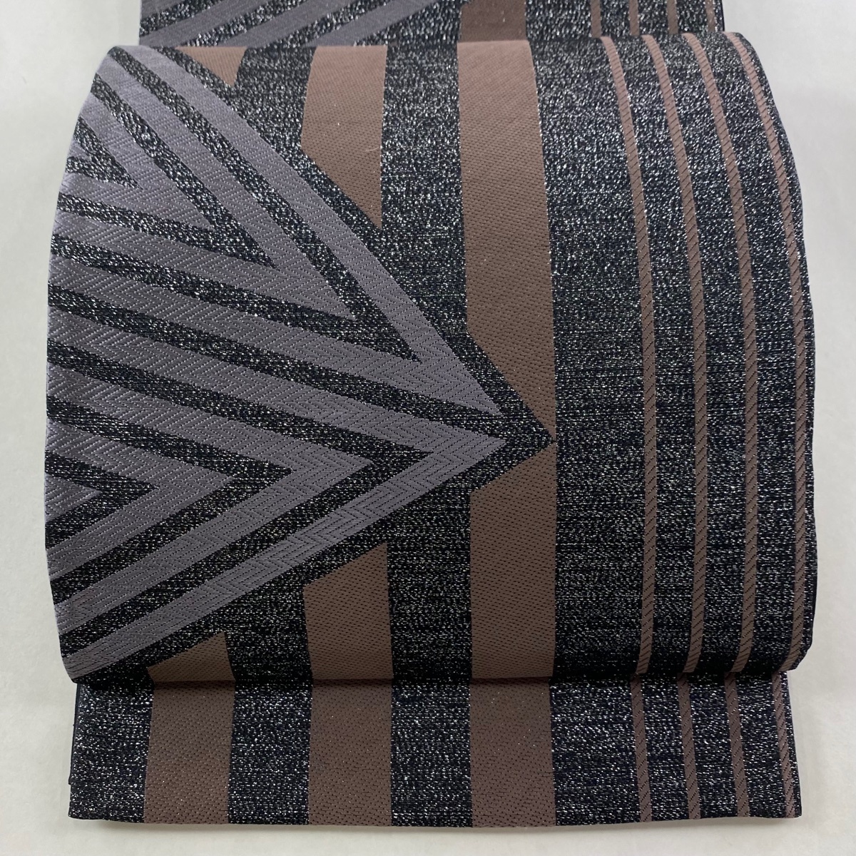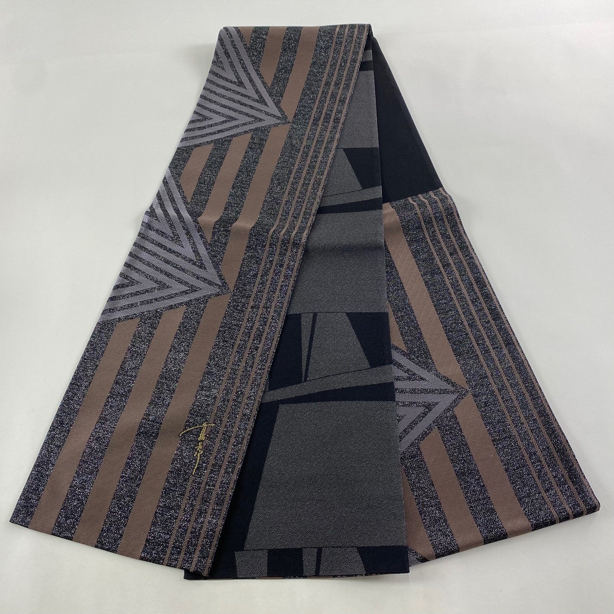 | 袋帯 美品 逸品 斉藤上太郎 落款 幾何学模様 縞 箔 黒 六通 正絹 【中古】 |