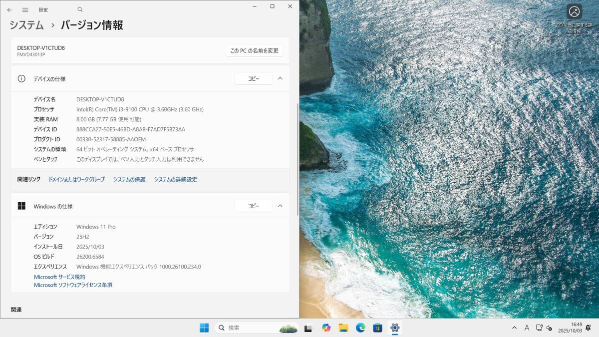 Core i3-9100 / RAM 8GB / HDD 500GB / DVD Super Multi / Win11 Pro (最新版25H2) / Libre Office / 中古動作品 n0310