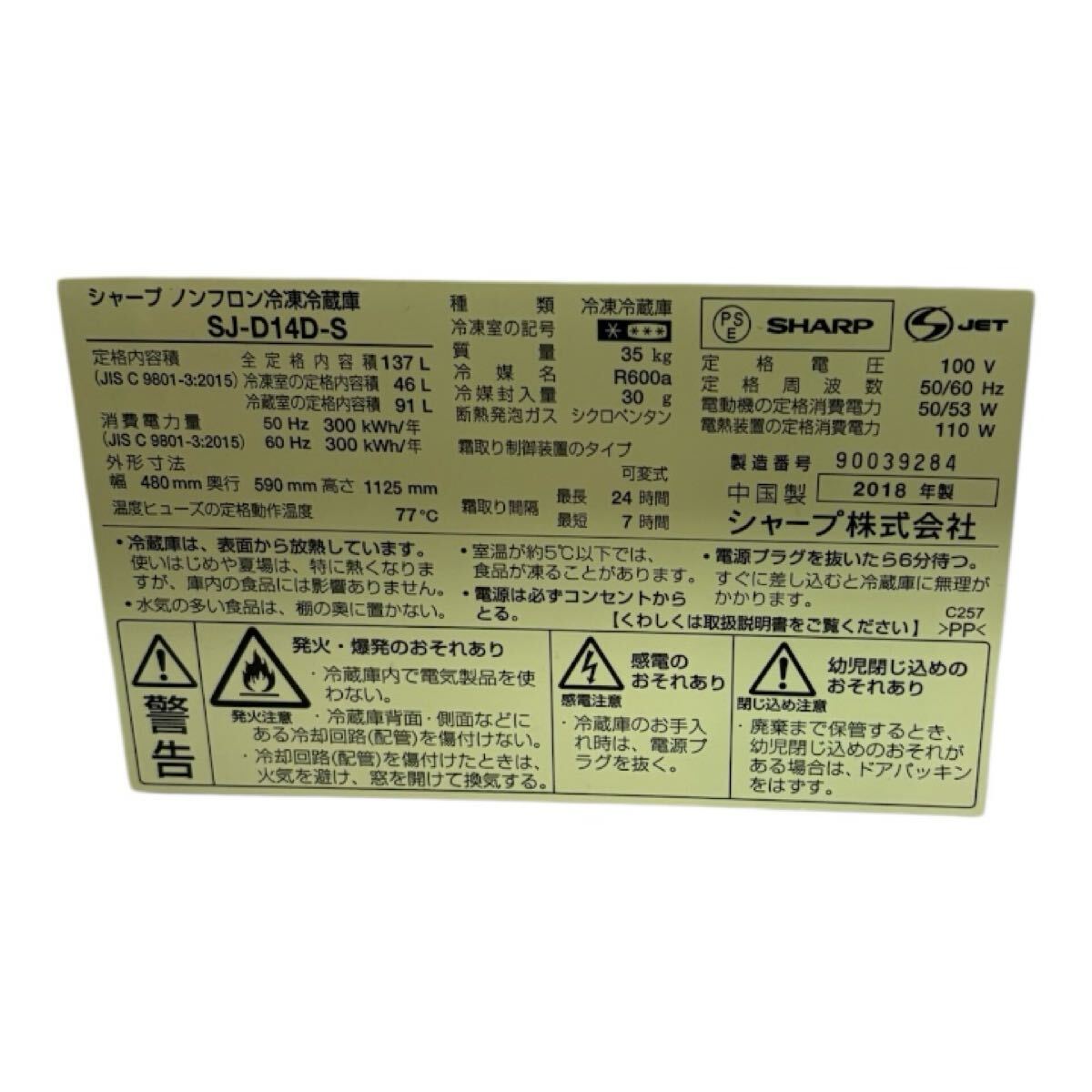 ●型番:SJ-D14D-S