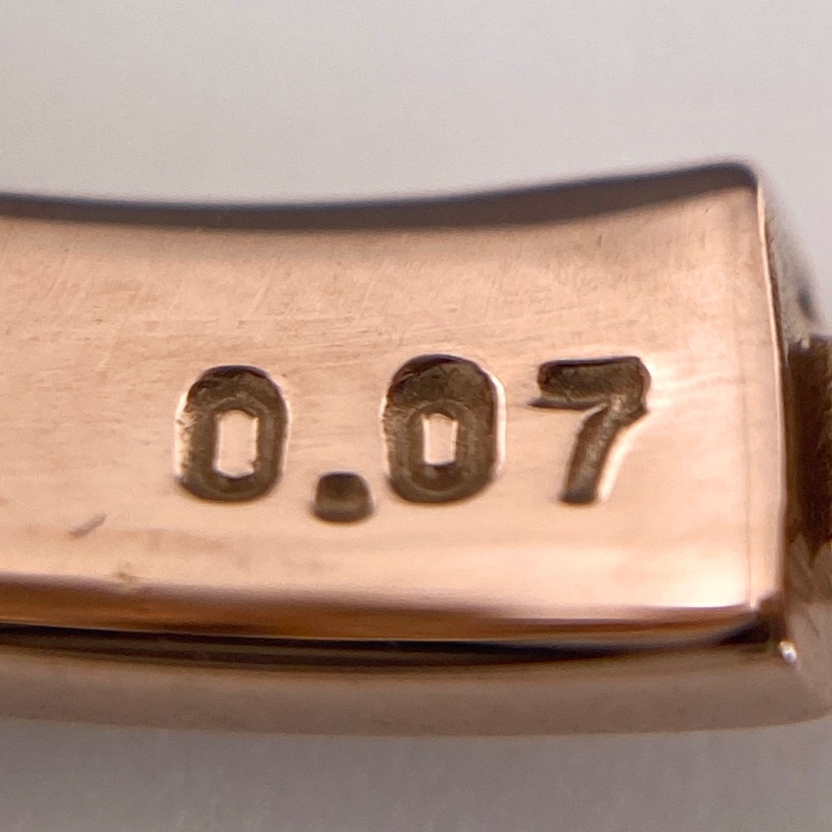 実寸サイズ| 約12号 | リング最大幅 | 約1.9mm | リング最小幅 | 約1.5mm | リング厚さ | 約1.2mm | カラット | 0.07ct | 素材 | K18、ダイヤモンド | コメント | 中古品の為、若干のキズや汚れがございます。 | 付属品 | なし | |