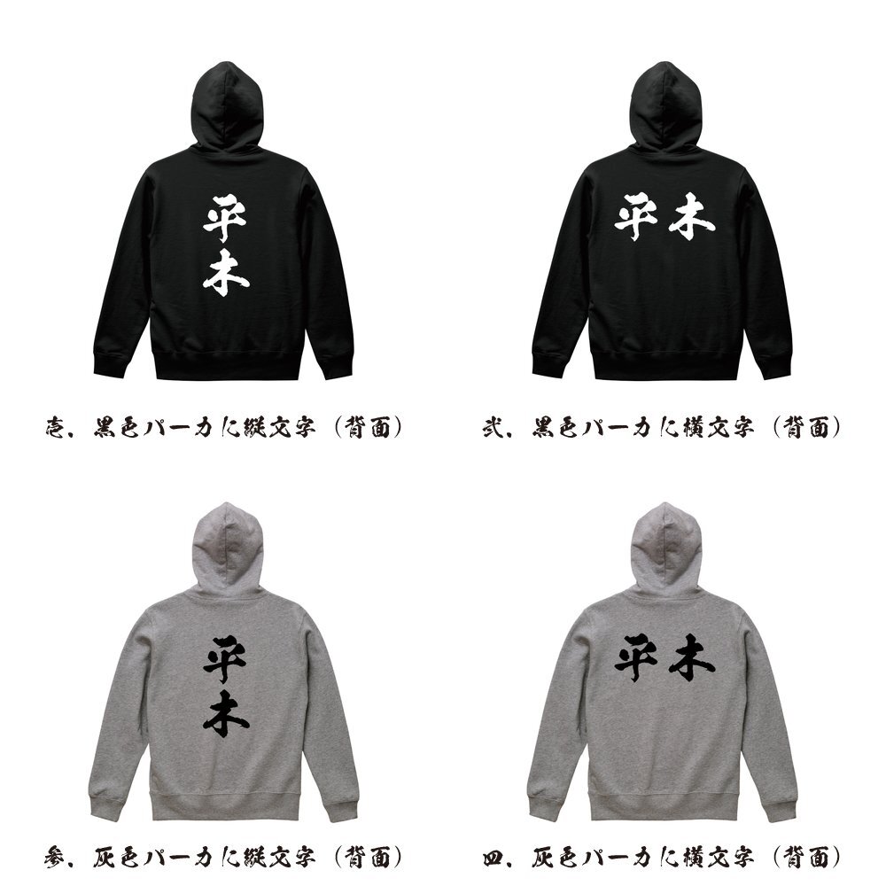 平木 書道家が書く デザイン フルジップ パーカ 【 名字 】 メンズ レディース キッズ