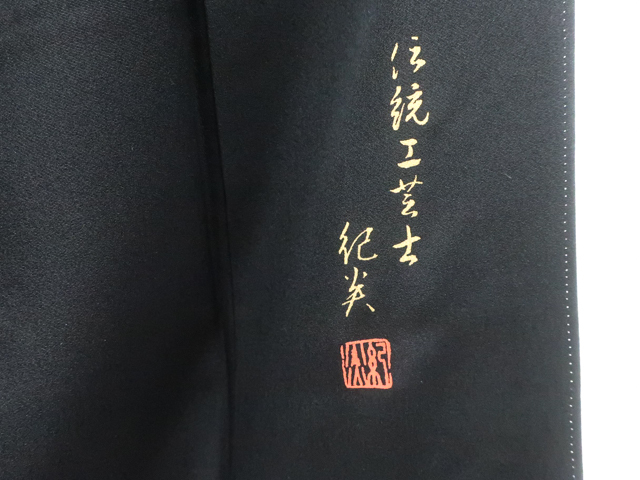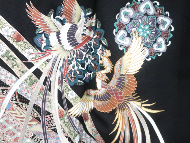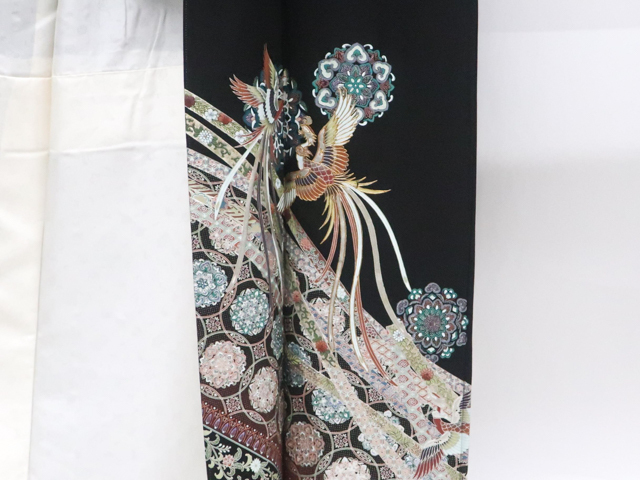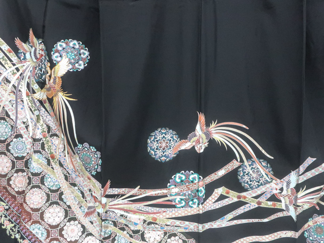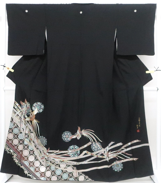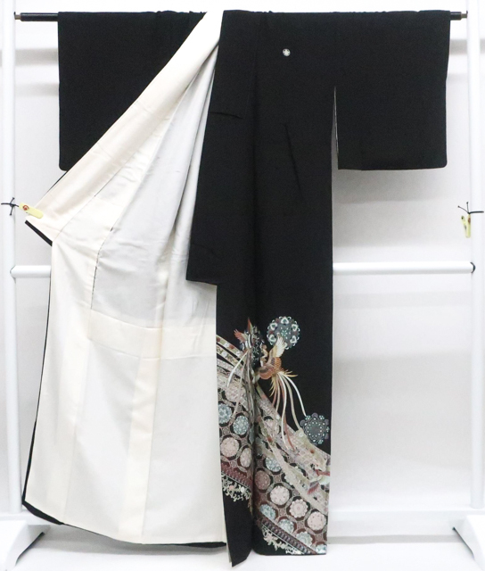 《京都一輝堂》黒留袖 作家物 落款入り 五つ紋 正倉院 鳳凰 比翼仕立て 正絹 着物 身丈約163cm 裄丈67.5cm 25z11-6233