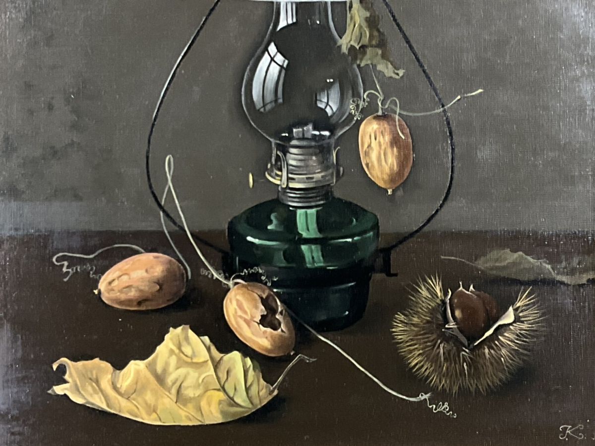真作■油彩■川田恒之輔■『ランプの秋』■10号 リアリズム■新構造社会員 師:藤島武二 東京美術学校■