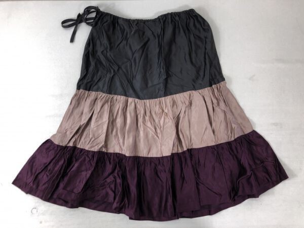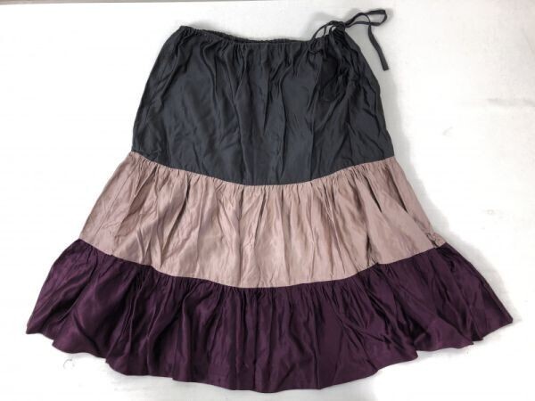 ジルスチュアート JILL STUART USA製 レディース レトロ モード 古着 レーヨン・シルク ウエスト絞り ティアード スカート 0 紫系 です。