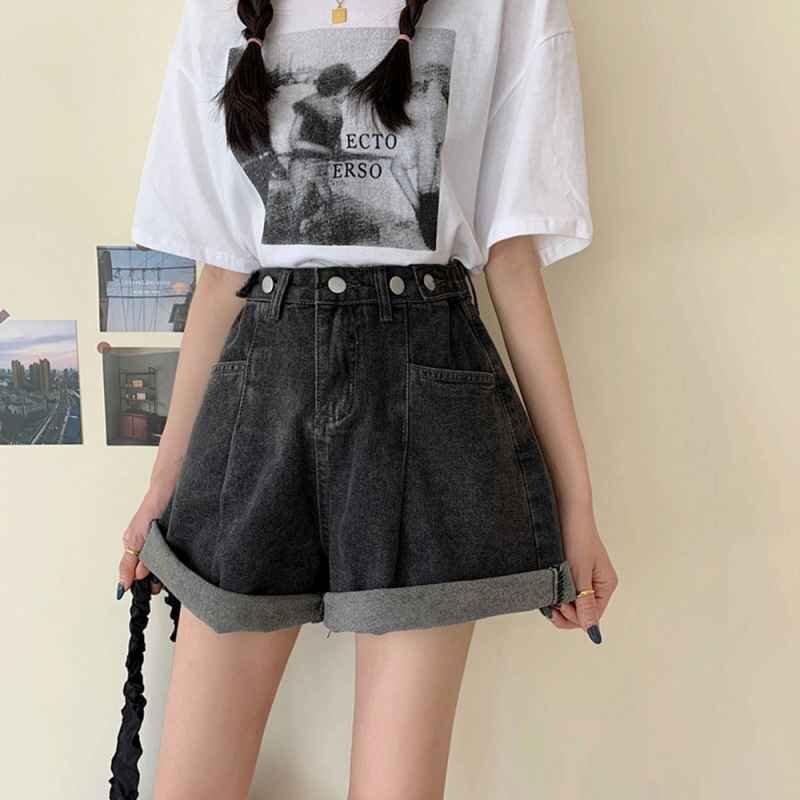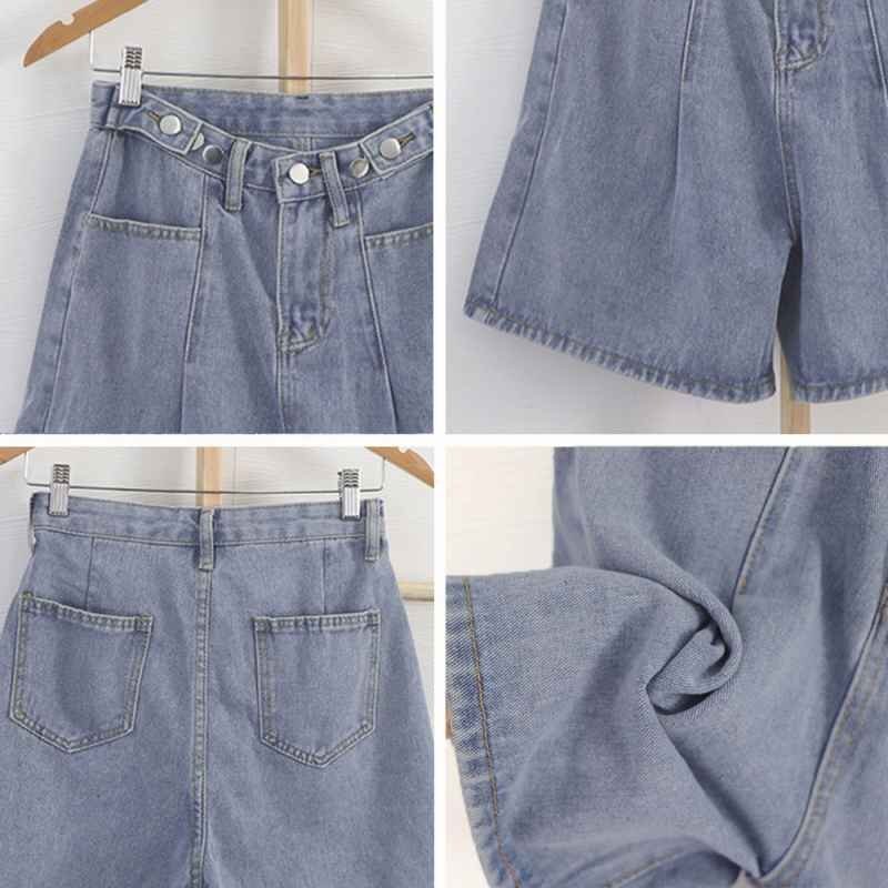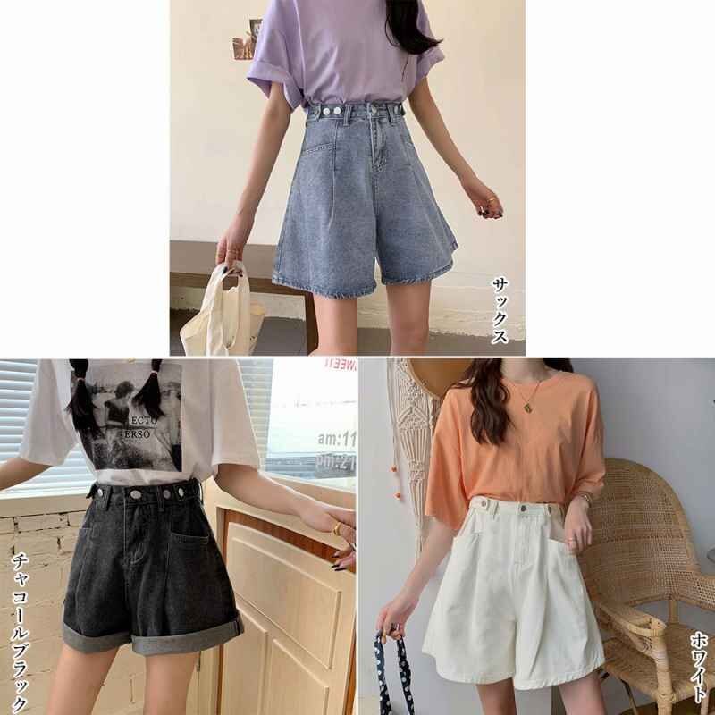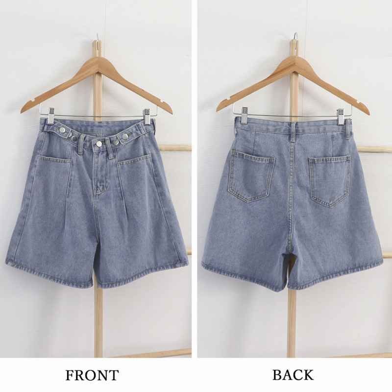裾に向けて広がったAラインシルエットが、脚をほっそりと長く見せてくれるデニムショートパンツです。