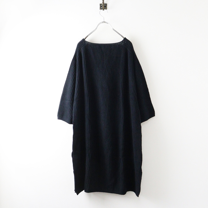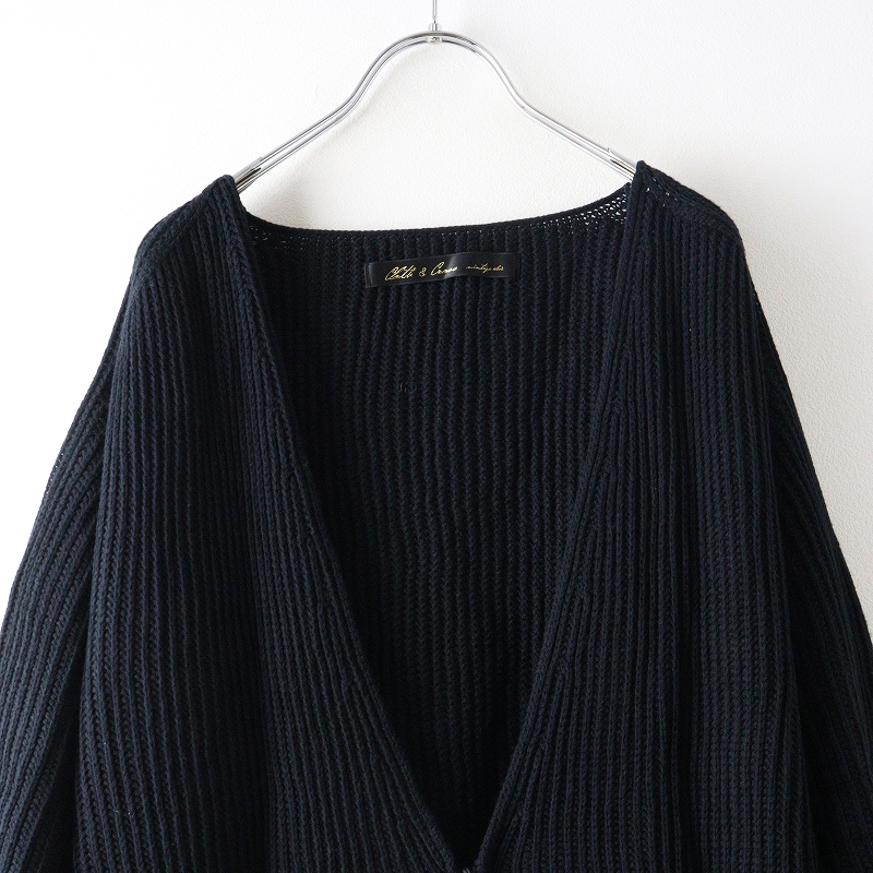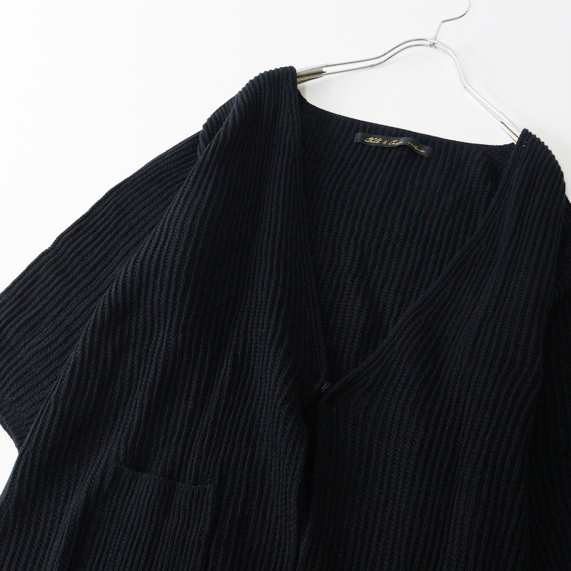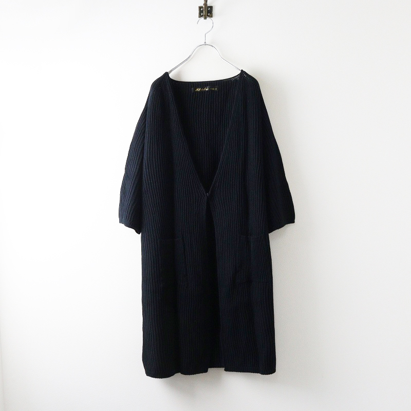 美品 ハグオーワー クロスアンドクロス HUG O WaR Cloth&Cross 畦編みロングカーディガン\ブラック ニット 羽織り【2400014688634】