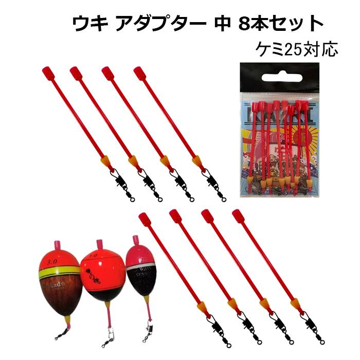 ウキ アダプター 中 8本セット 円錐ウキ 昼夜 中通しウキ カン付ウキ 仕掛け 釣り 釣具
