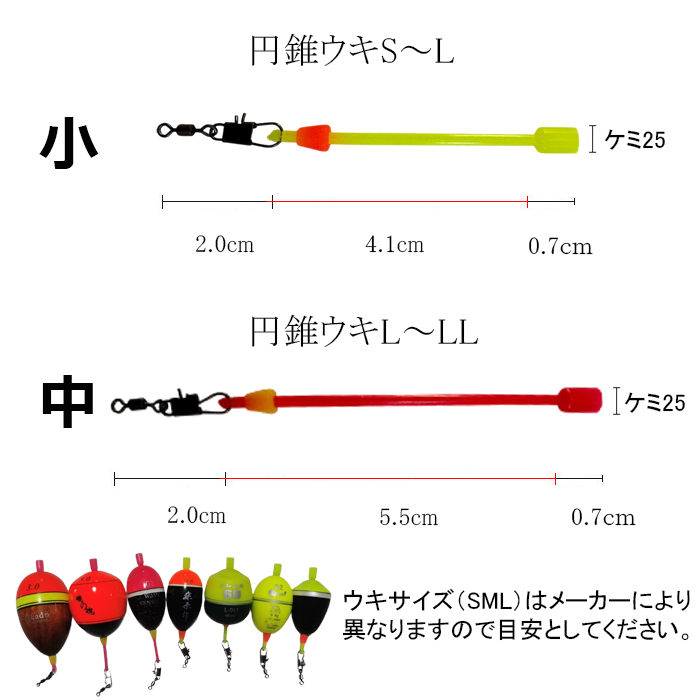 中は円錐ウキのL~LLサイズ対応