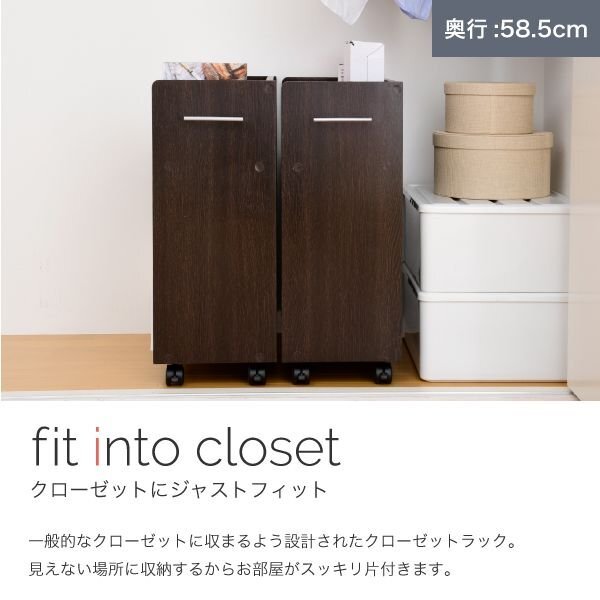 クローゼット ラック 収納 2個セット A4ファイル 幅26.5 奥行58 .5 キャスター付き
