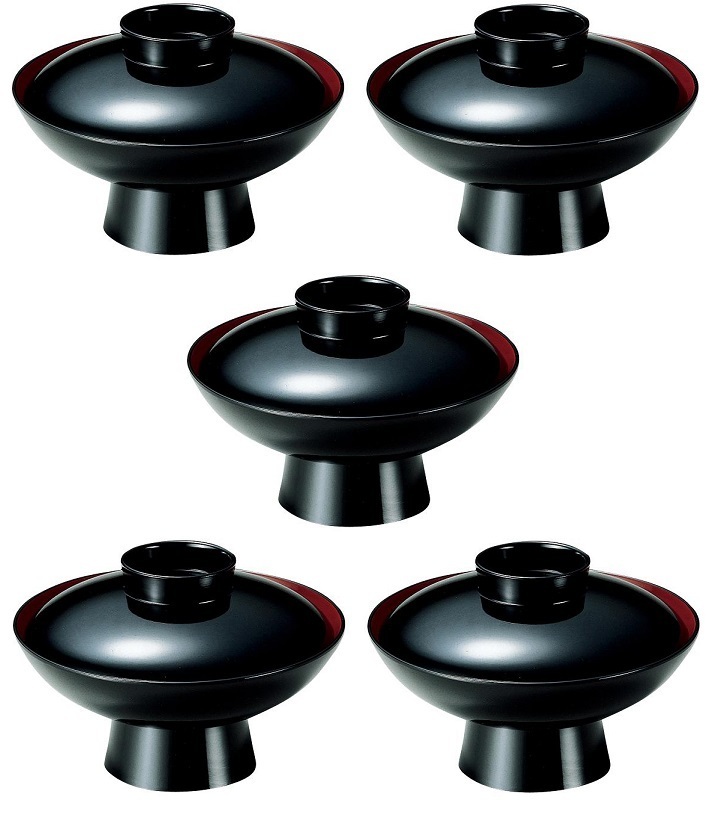 ☆越前塗6寸高台小槌椀黒内朱5個丼椀・煮物椀などに日本製新品