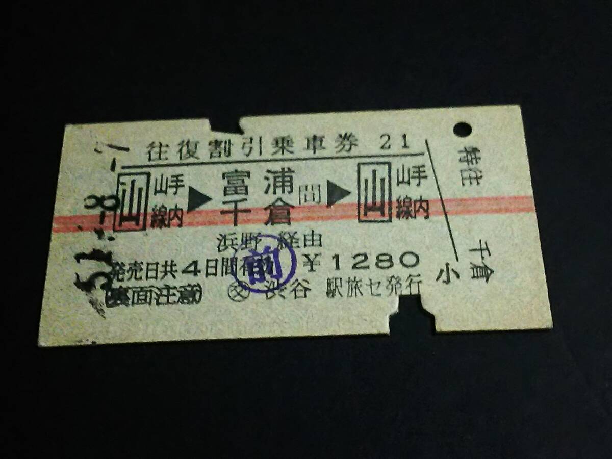 【[赤線]往復割引乗車券 21(A型)】 山手線内⇒冨浦/千倉⇒山手線内(浜野経由) S51.8.7
