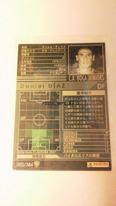 ☆WCCF2006-2007☆06-07☆002☆白☆ダニエル・ディアス☆ボカ・ジュニアーズ☆Daniel Diaz☆C.A. Boca Juniors☆
