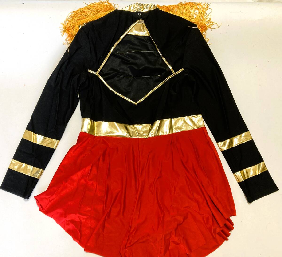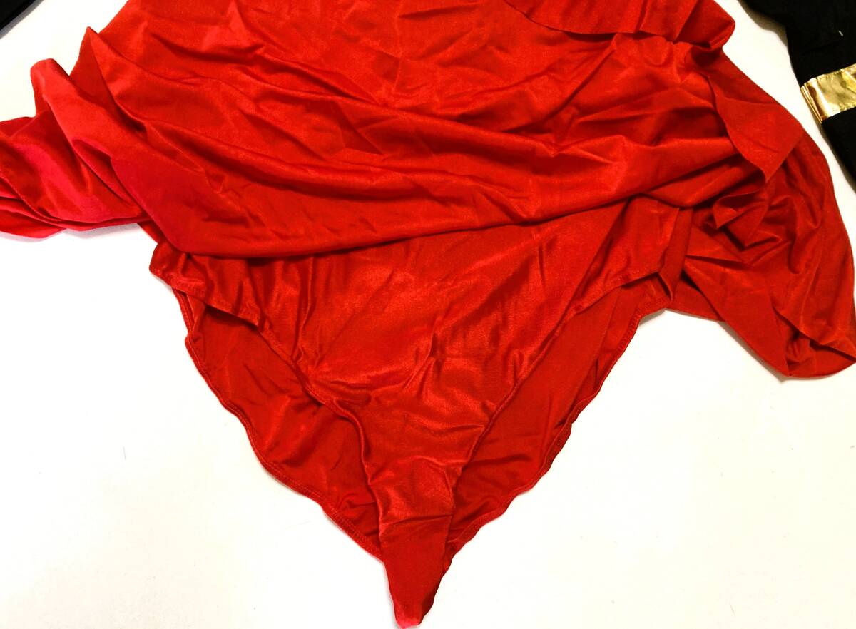 特大3XLサイズ BLACK&RED サーカスリング ダンスウェア長袖 インブリーフレオタードつるつる コスプレ ステージ衣装 IEFIEL社製