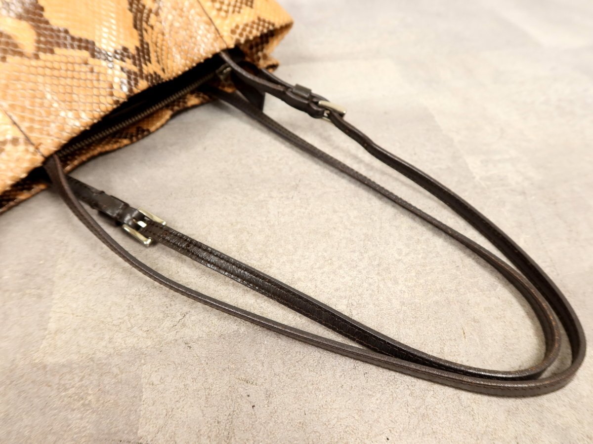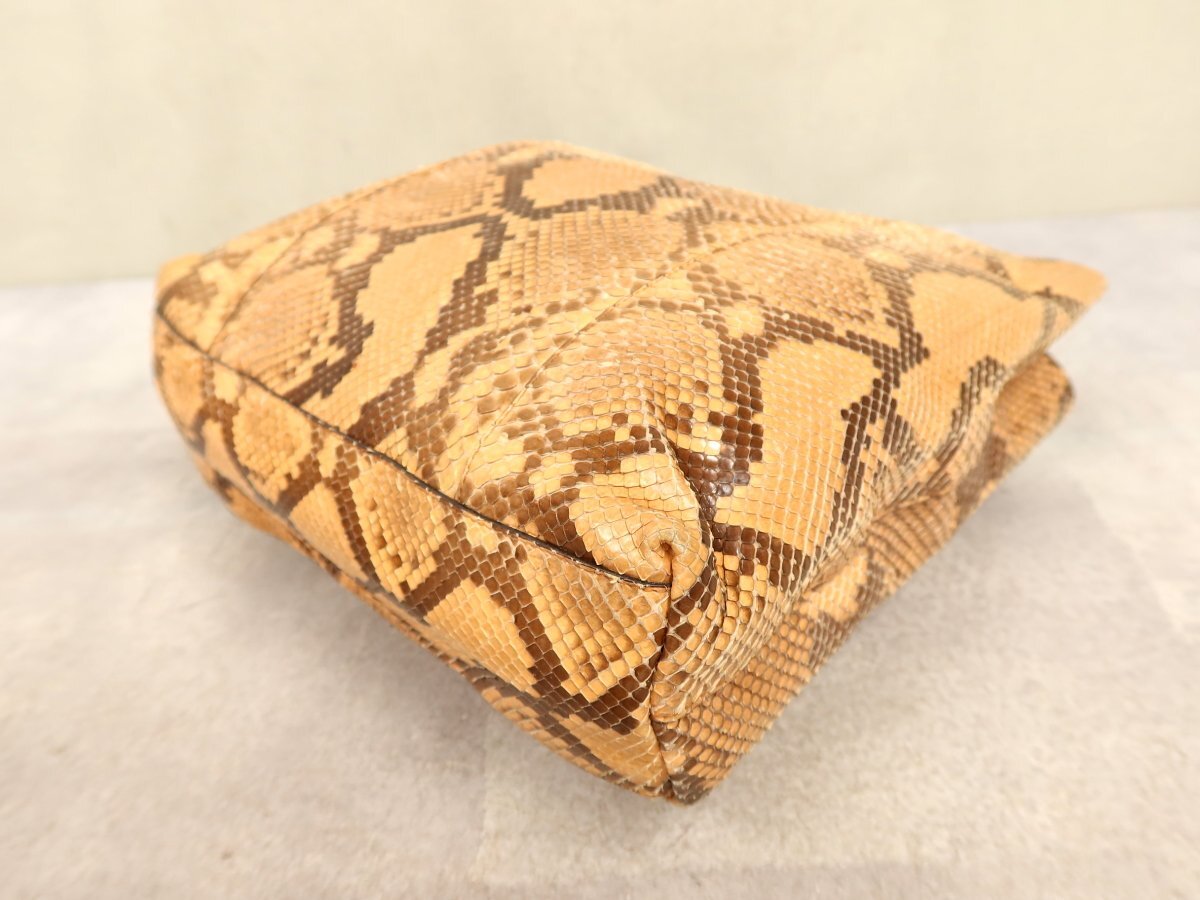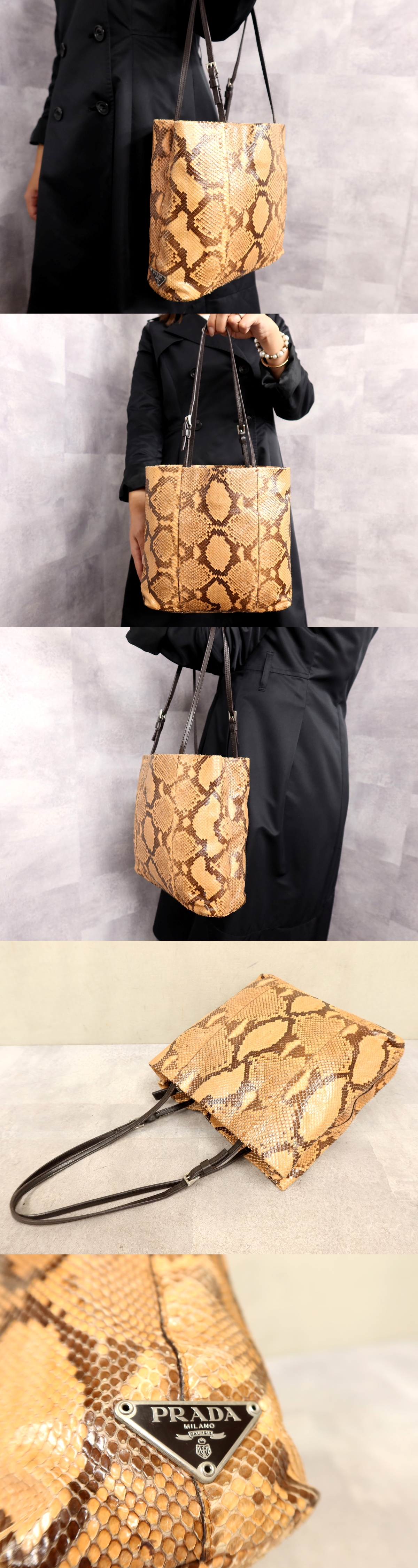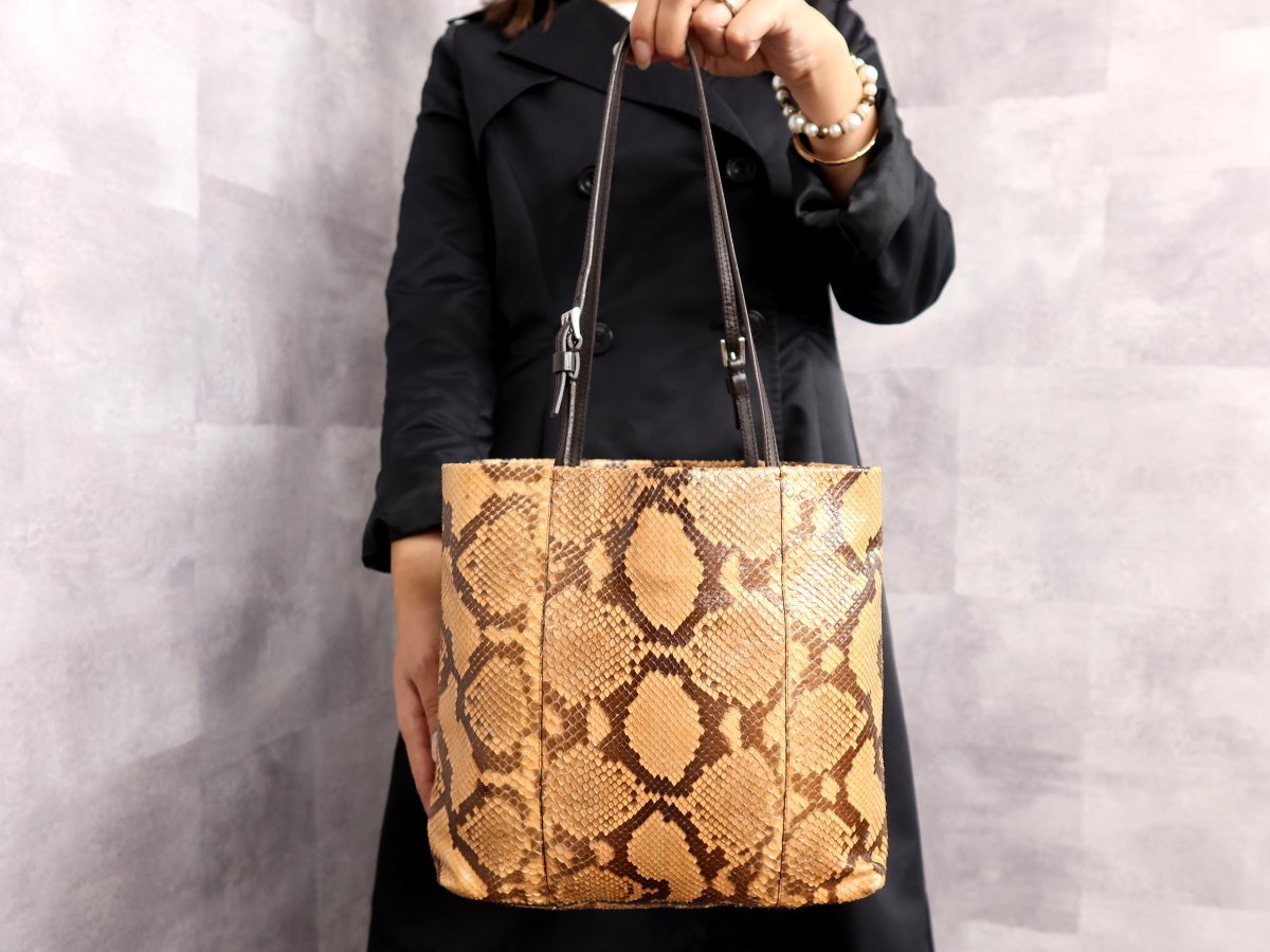 ●超美品●PRADA プラダ●三角ロゴプレート●パイソン 本 ヘビ 革●トート バッグ●ブラウン系●シルバー金具●イタリア製●収納●Js62303