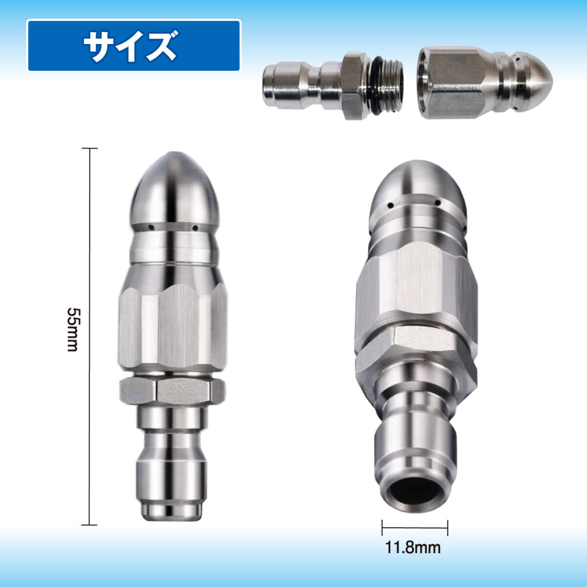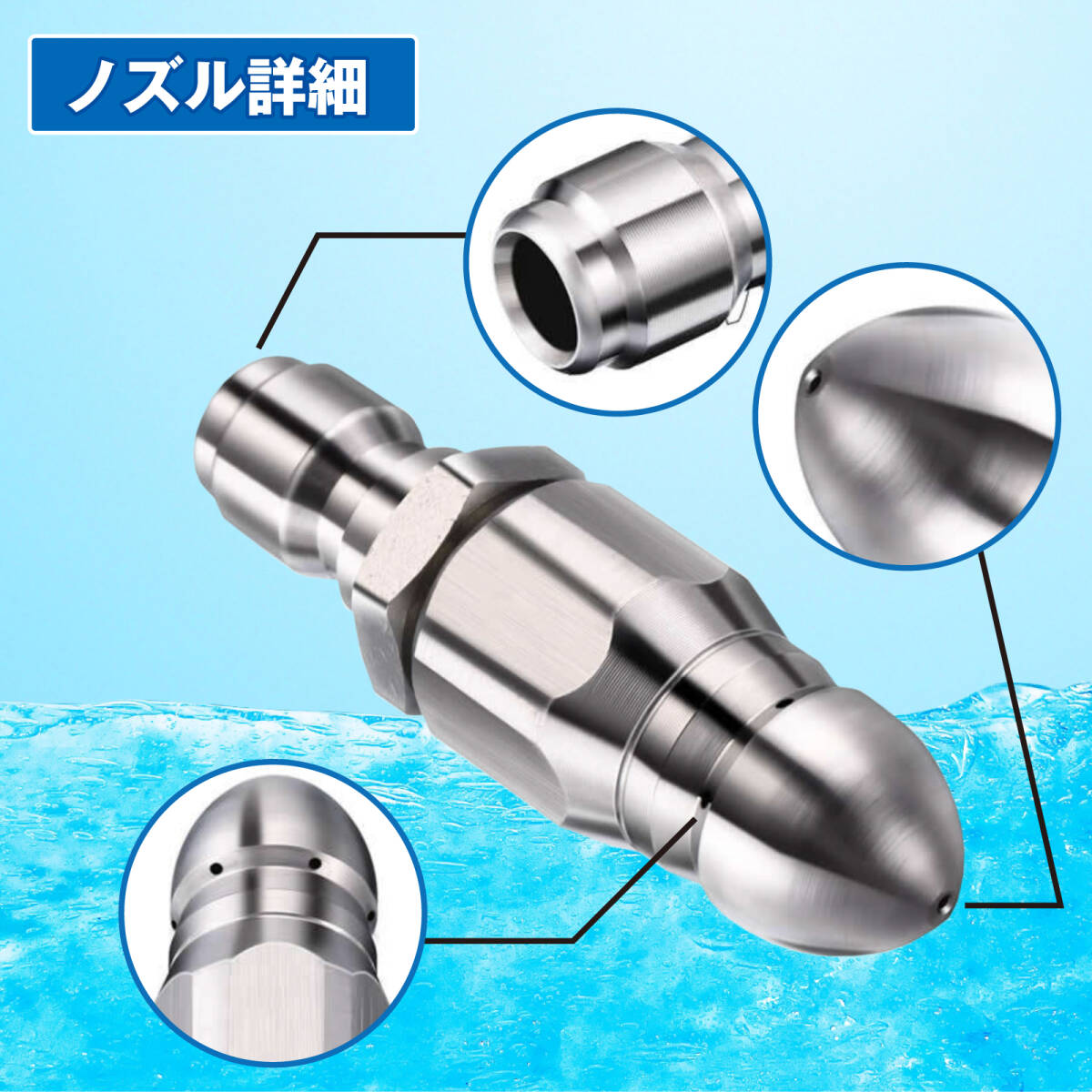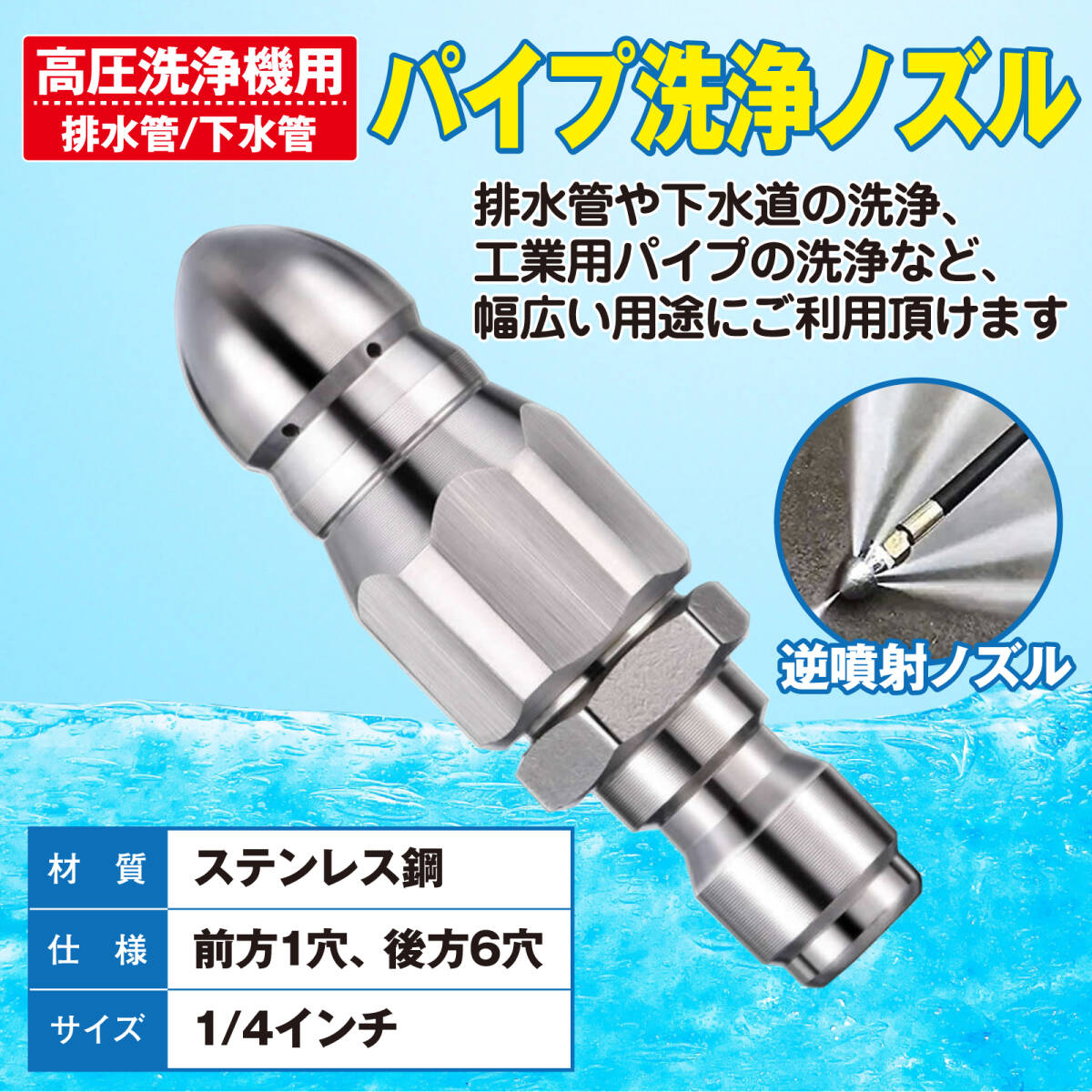 高圧洗浄機用 下水管 排水管 洗浄ノズル 逆噴射ノズル 高圧洗浄ノズル 1/4インチコネクタ ステンレスノズル 詰まり 除去 1個