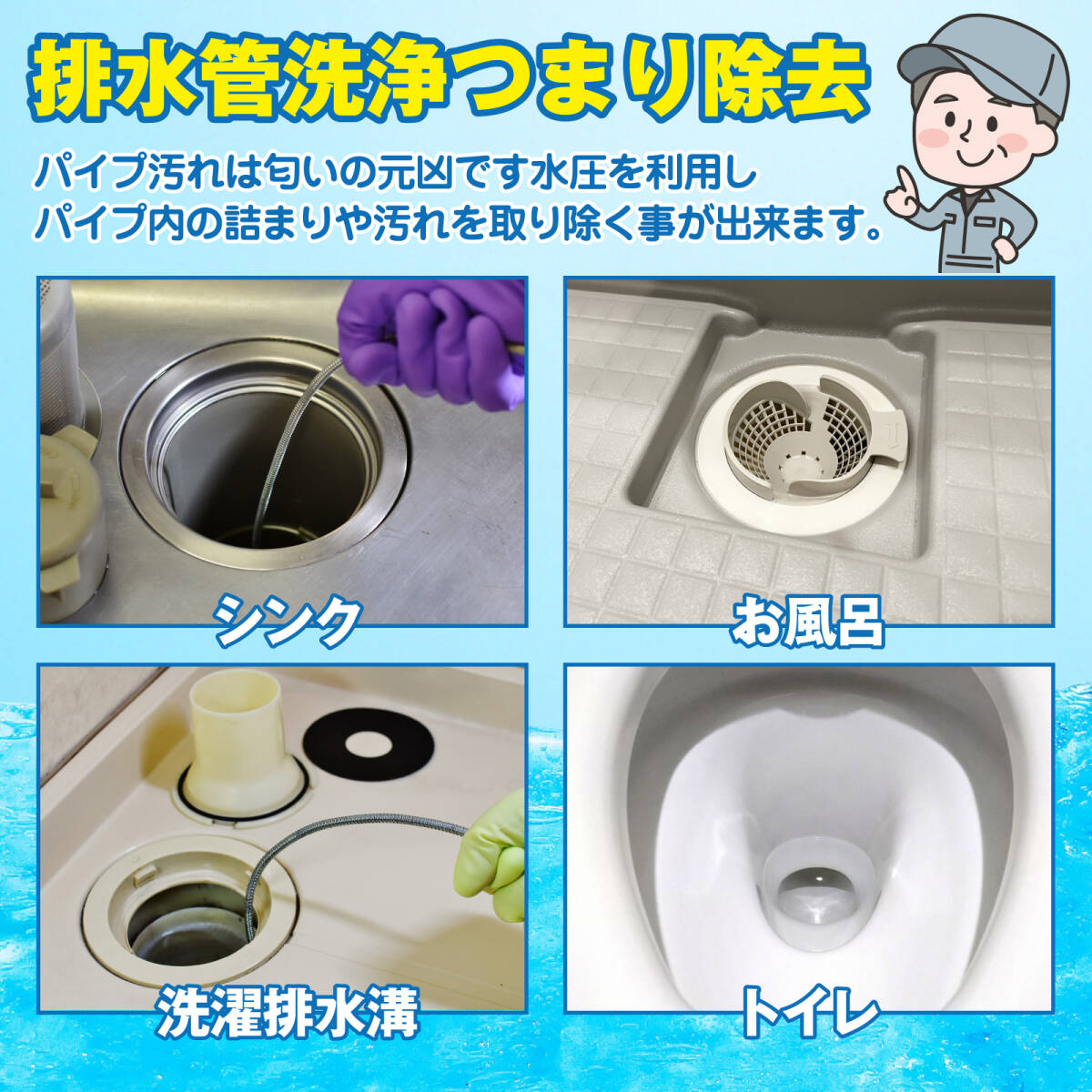 排水管や下水道の洗浄、工業用パイプの洗浄など、幅広い用途にご利用頂けます。