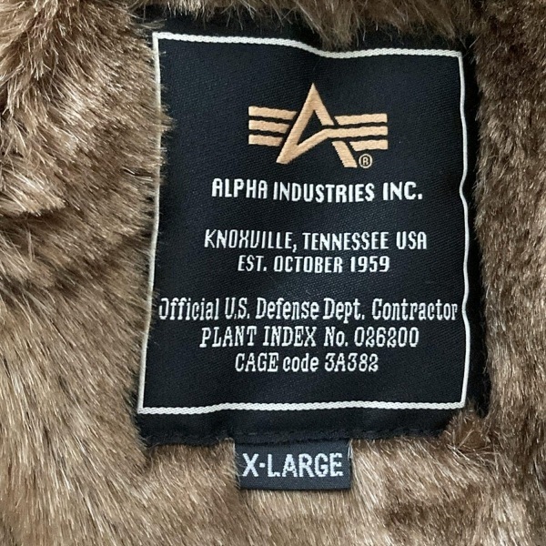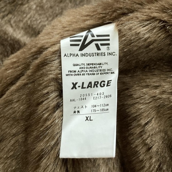 アルファ ALPHA INDUSTRIES サイズXL - カーキ×ダークブラウン メンズ 長袖/冬/フード着脱可 コート