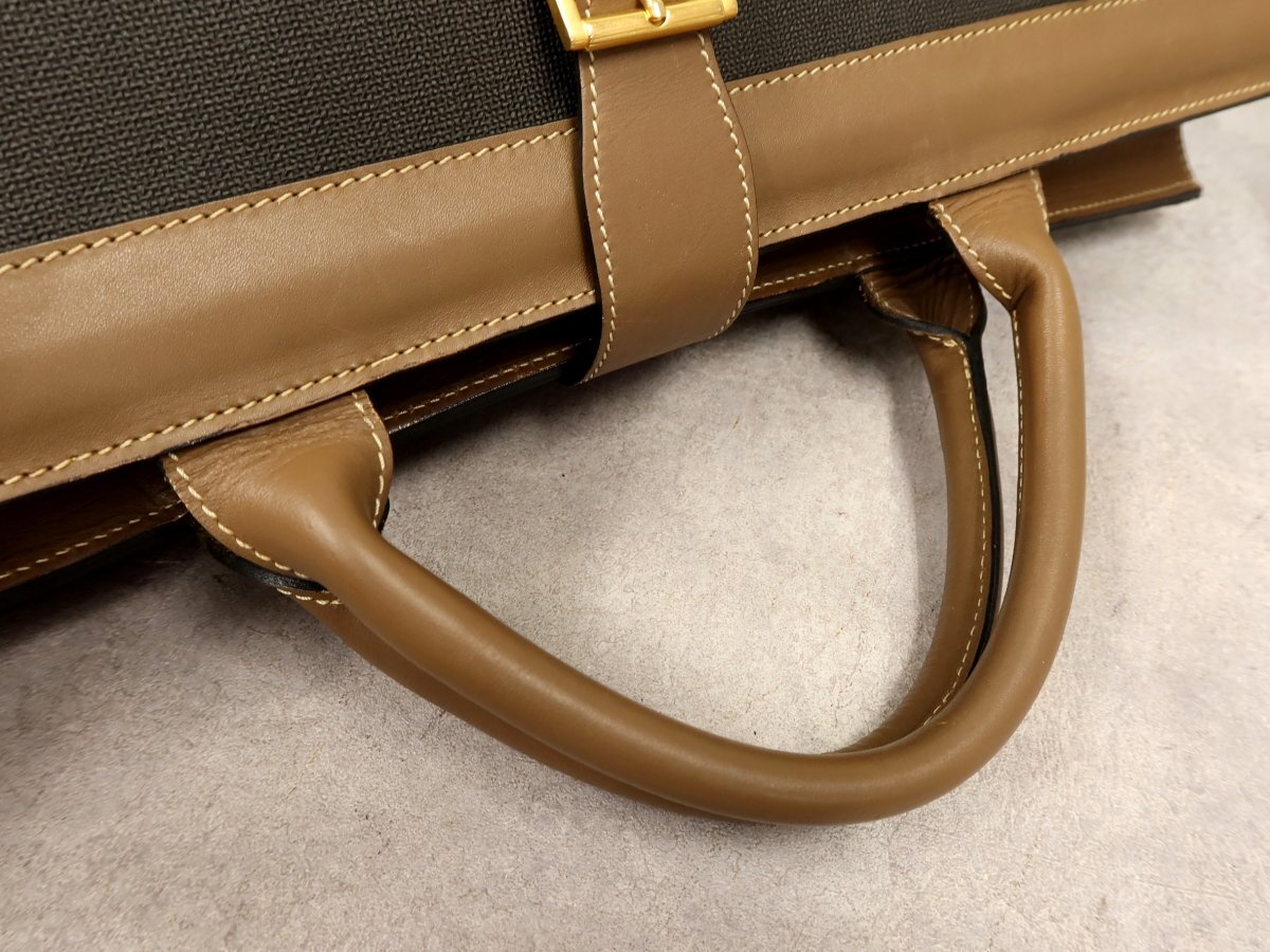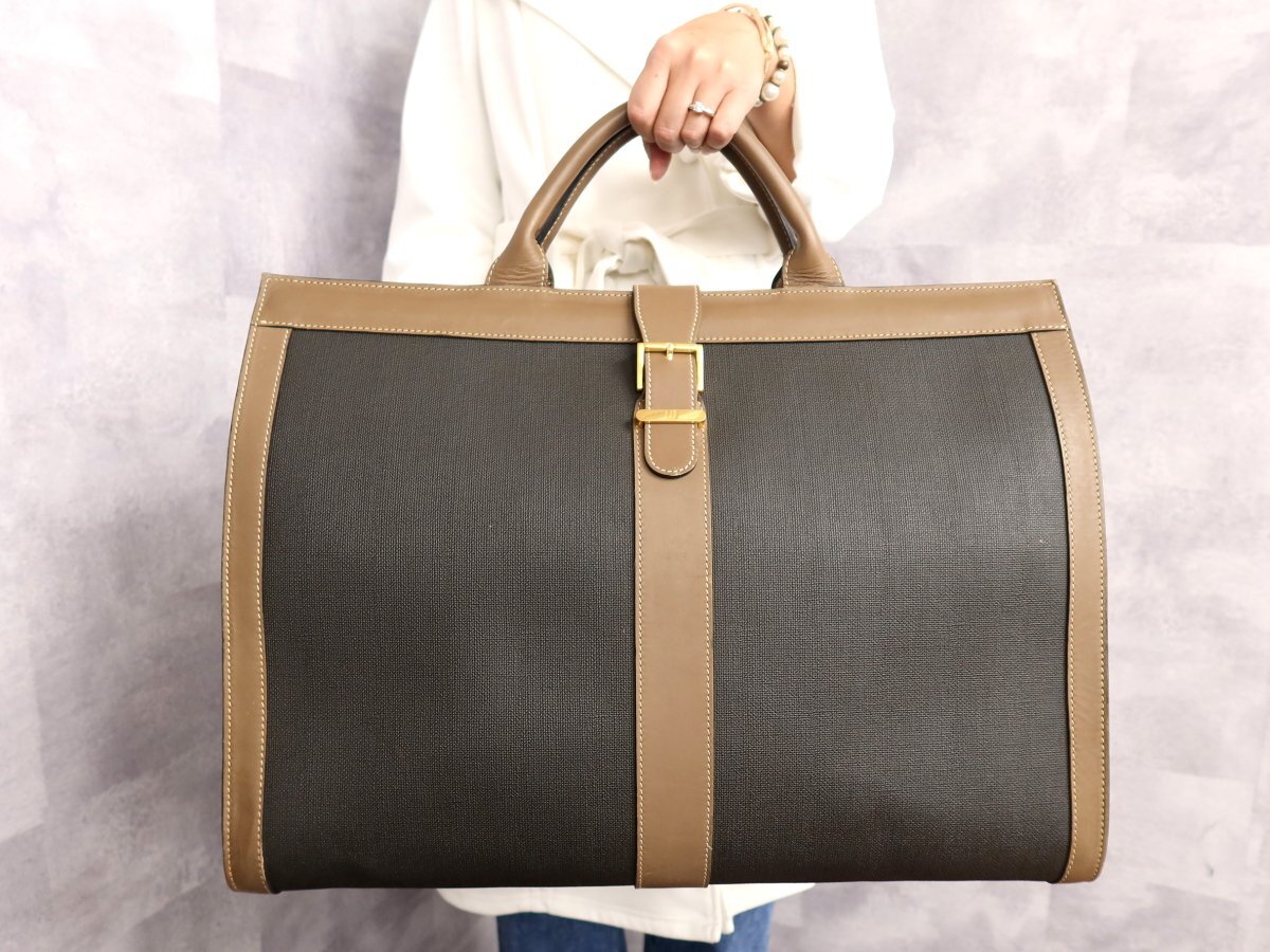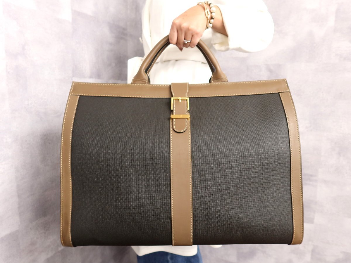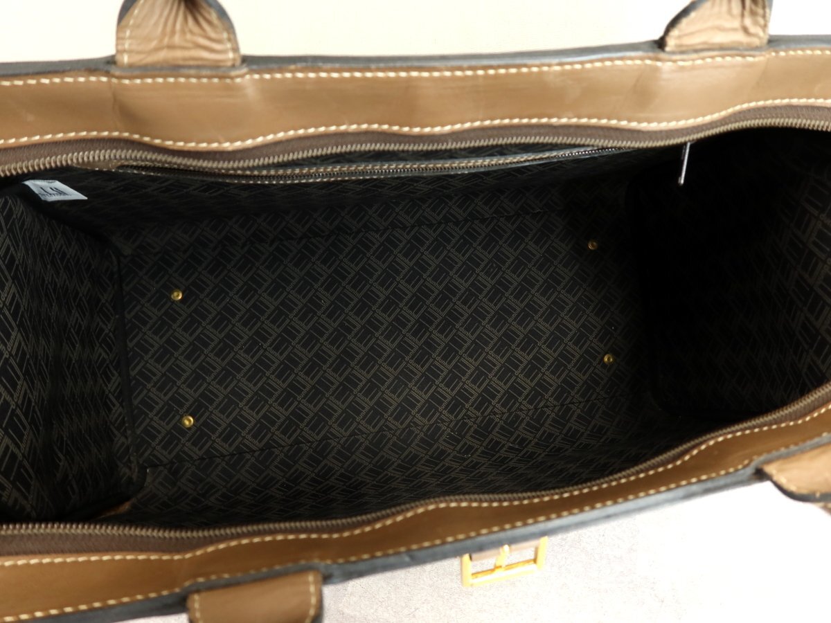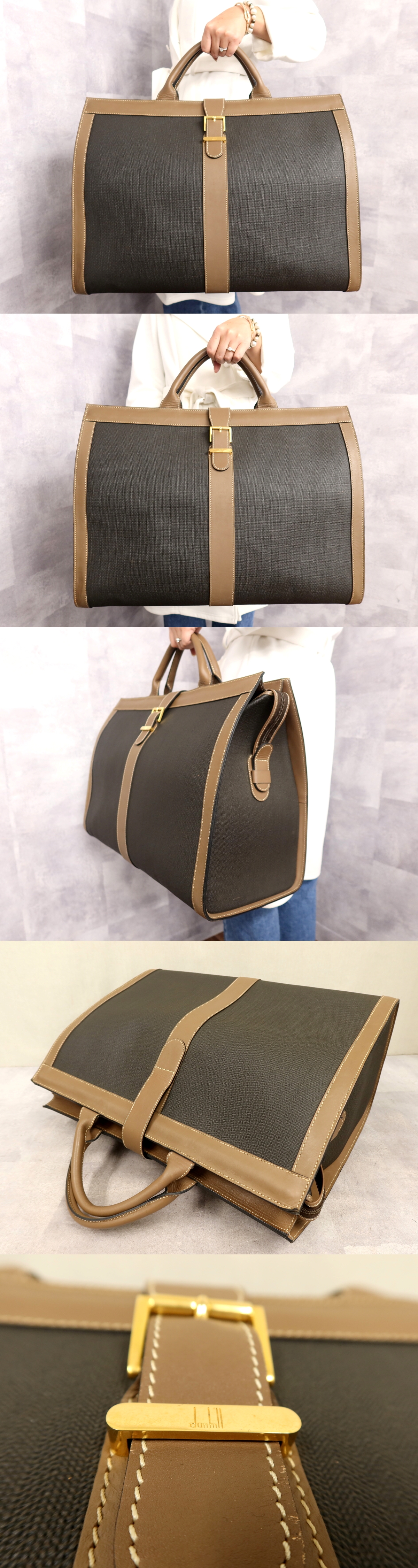 ●超美品●dunhill ダンヒル●メンズ●PVC カーフ レザー 本革●ボストン バッグ●ブラウン系●ゴールド金具●ビジネス●かばん●Js62276
