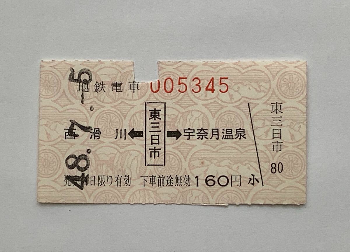 【商品】富山地方鉄道 地鉄電車 乗車券 ( 西滑川←東三日市→宇奈月温泉 ) 東三日市駅発行 005345